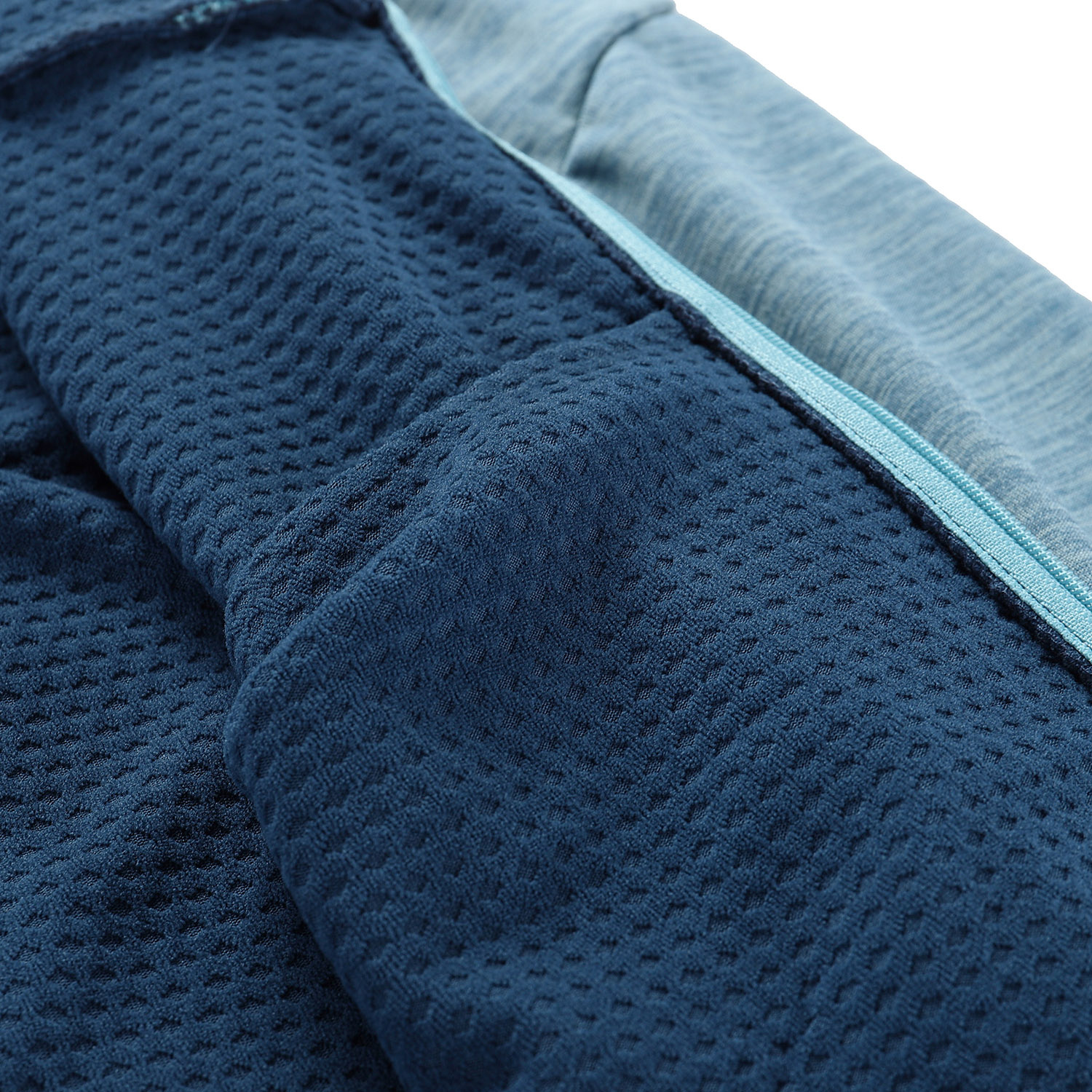 Moderní materiál zajišťuje vysokou prodyšnost a rychlé schnutí, takže tělo zůstává v suchu a optimální teplotě i při intenzivní fyzické námaze. Praktické detaily zahrnují dlouhý zip pro snadné oblékání, stojáček u krku, tři přední kapsy na drobnosti a delší taháčky na zipy, které usnadňují manipulaci, a reflexní potisk na předním dílu zajišťuje viditelnost a bezpečnost při snížené viditelnosti.