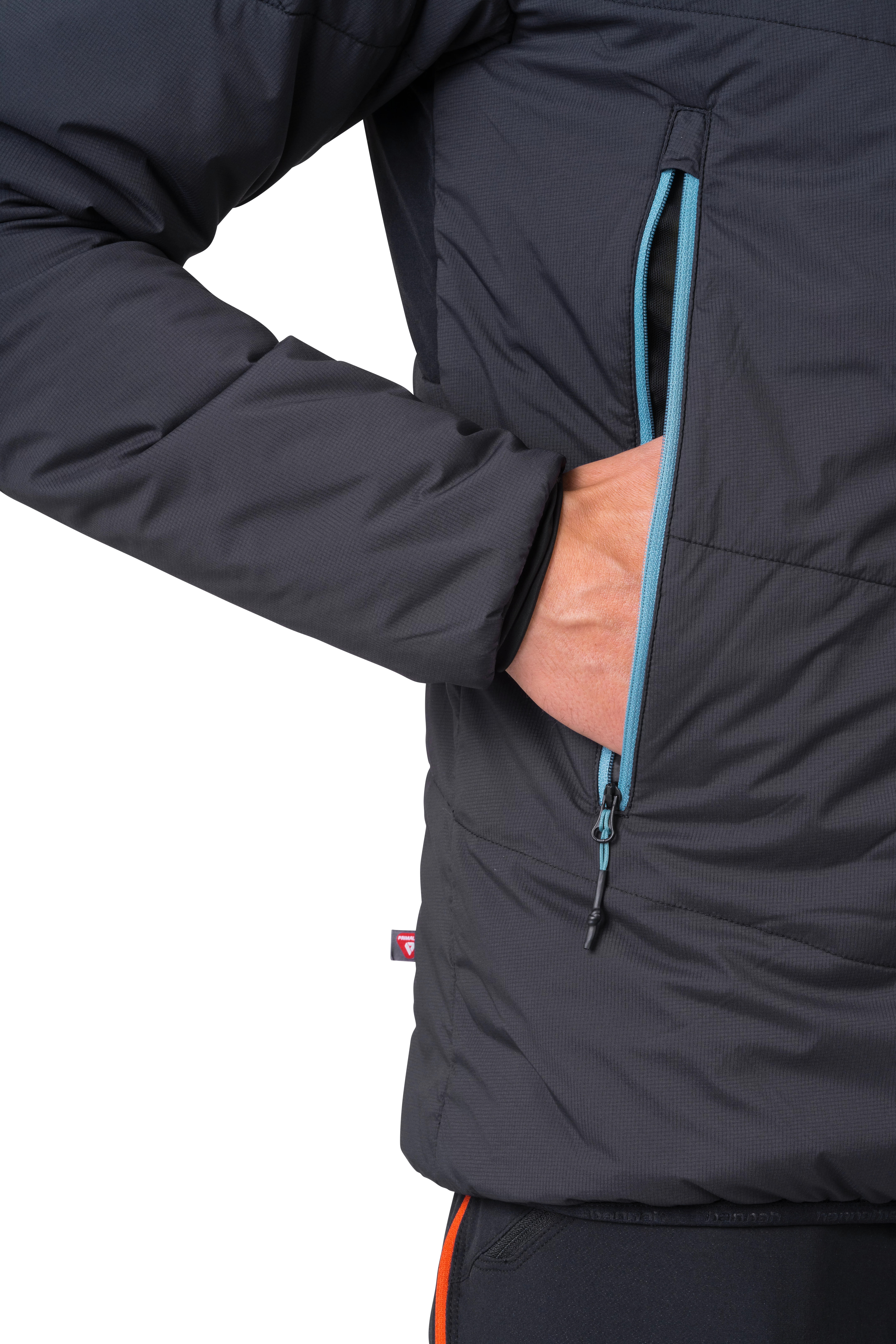 Pánská zateplená bunda s kapucí Hannah Gabber Hoody je ideální kousek na skitouring a aktivity během zimních měsíců. Dá se snadno sbalit do praktického transportního obalu. Zahřeje a váží pouhých 450 g. Bunda je plněna značkovou výplní z dutého vlákna Primaloft Silver Active, která vás udrží v teple i ve vlhkých podmínkách. Kombinace materiálů Airlite Windproof a AFT Double Weave zajišťuje ochranu proti větru a dešti, odolnost vůči oděru a rychlý odvod tepla, abyste zůstali v suchu. Bunda je ošetřena ekologickou PFC FREE úpravou. Centrální YKK zip a YKK zipy hlavních kapes jsou voděodolné. Efektně prošité díly z pružného materiálu dodají bundě nadčasový vzhled.