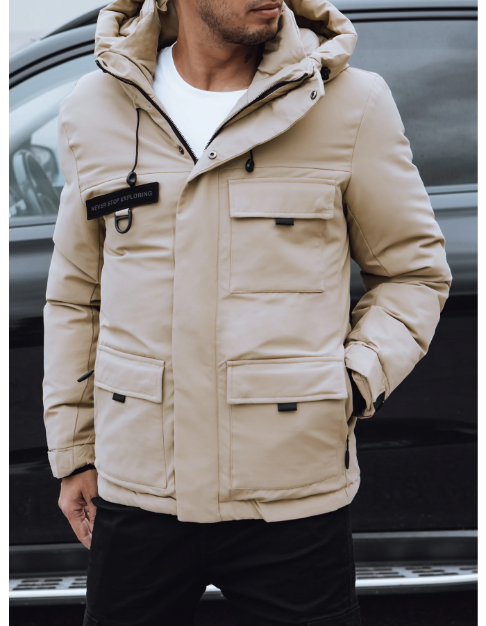 Pánská zimní bunda s kapucí béžová Dstreet TX4776 S/48