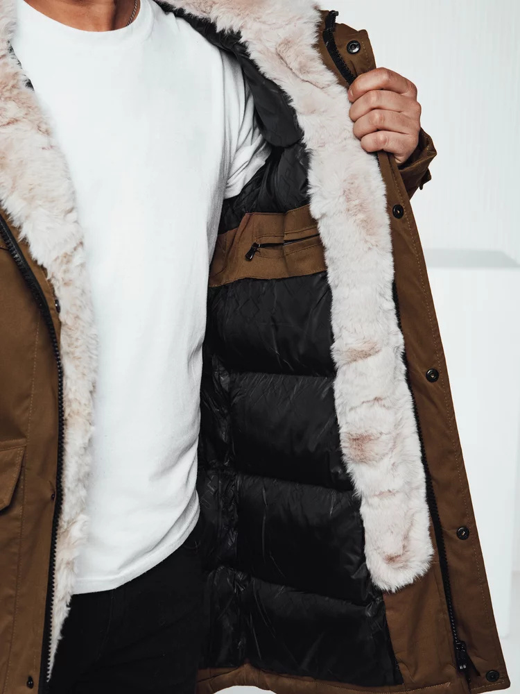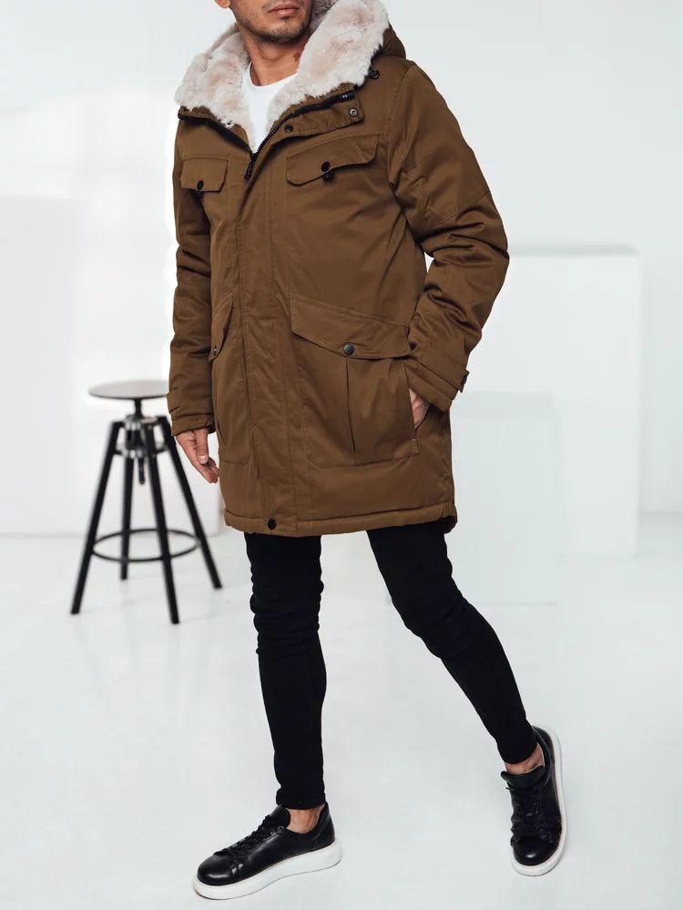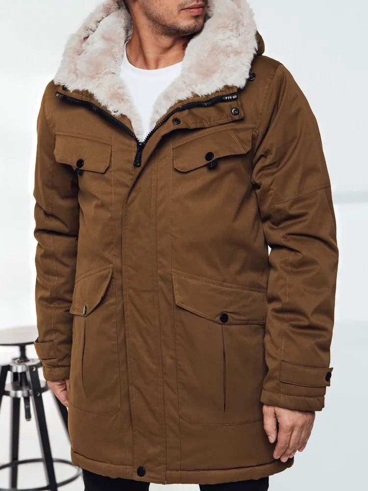Pánská zimní bunda parka s kapucí tmavě béžová Dstreet TX4970 M/48