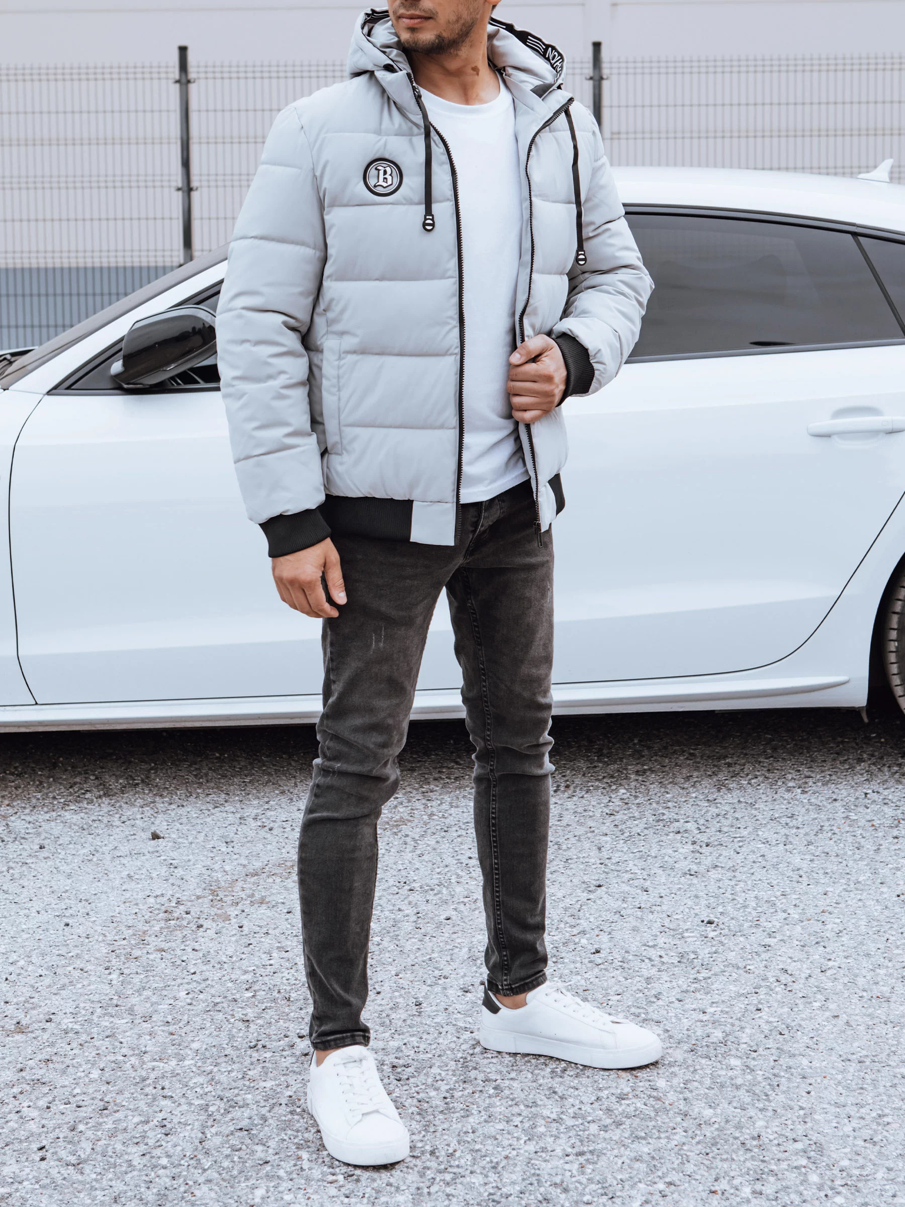 Pánská zimní prošívaná bunda s kapucí šedá Dstreet TX4830 Velikost: 3XL / 56