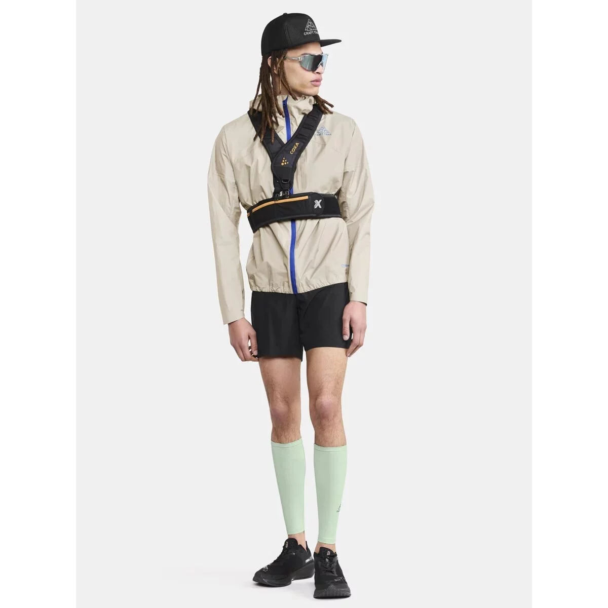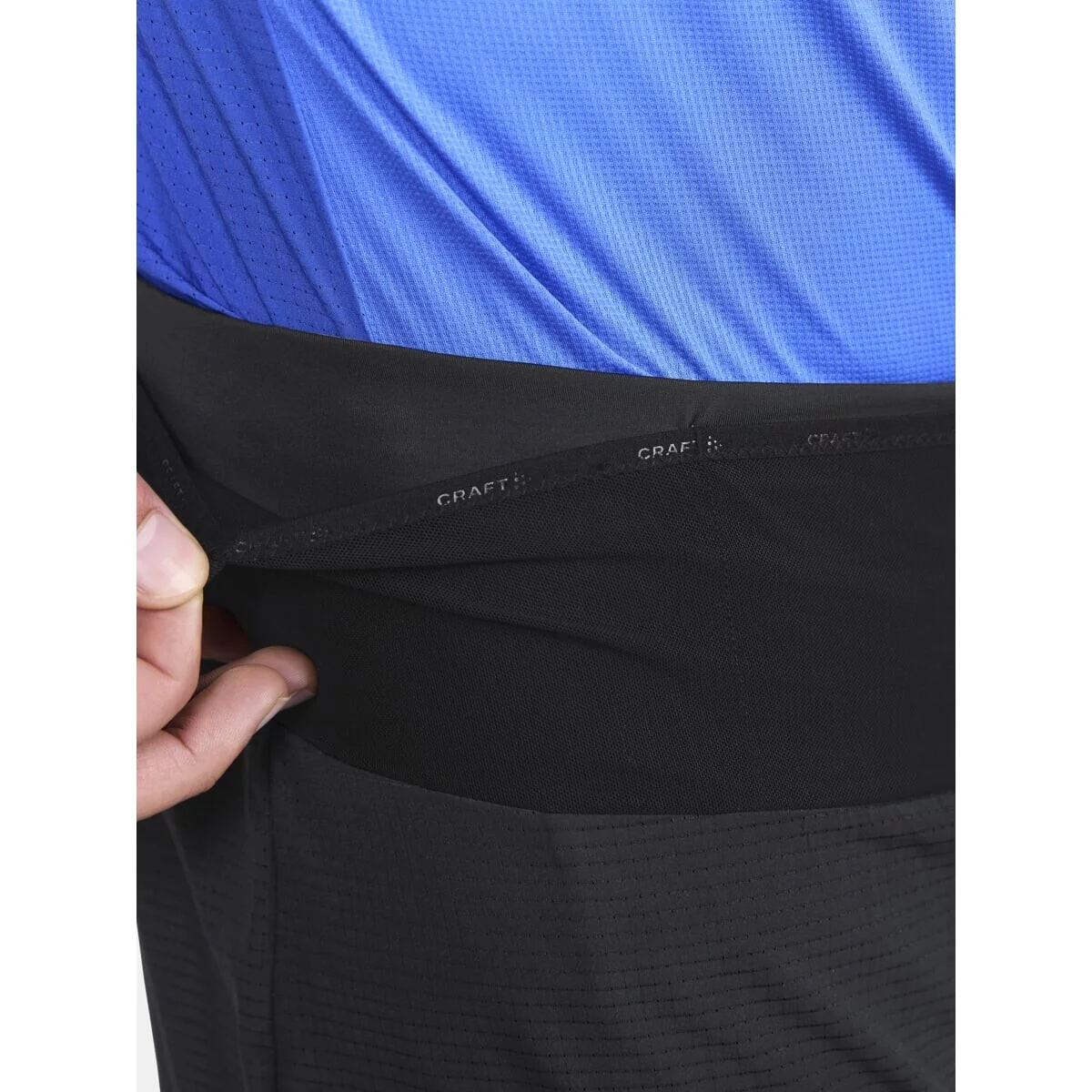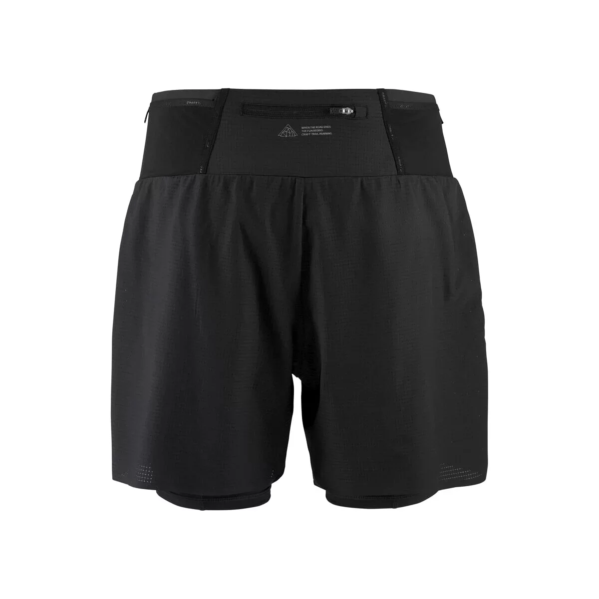 Pánské běžecké kraťasy2 v 1 CRAFT PRO Trail jsou velmi lehké, prodyšné a poskytují spoustu kapes pro uložení výživy nebo jiných drobností.