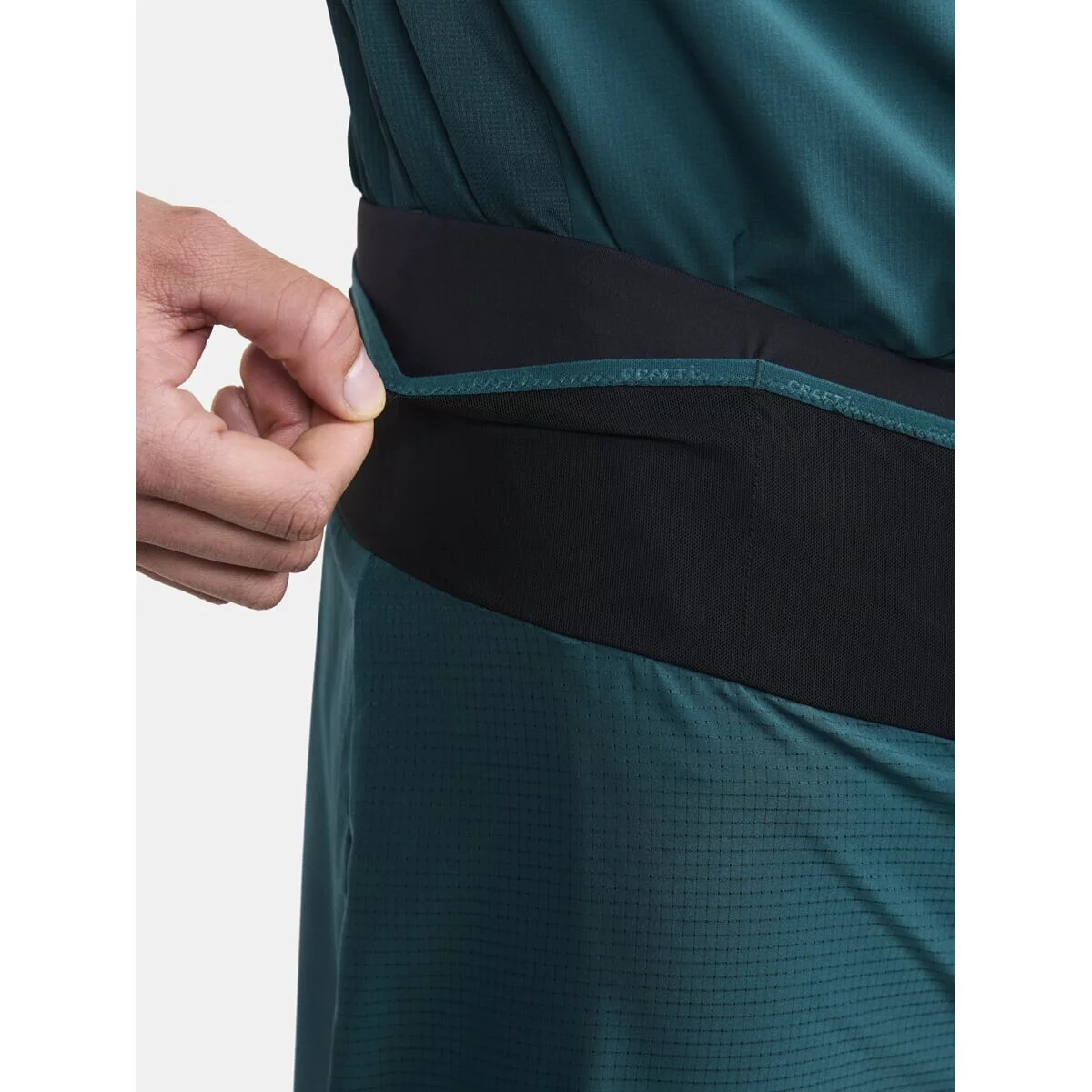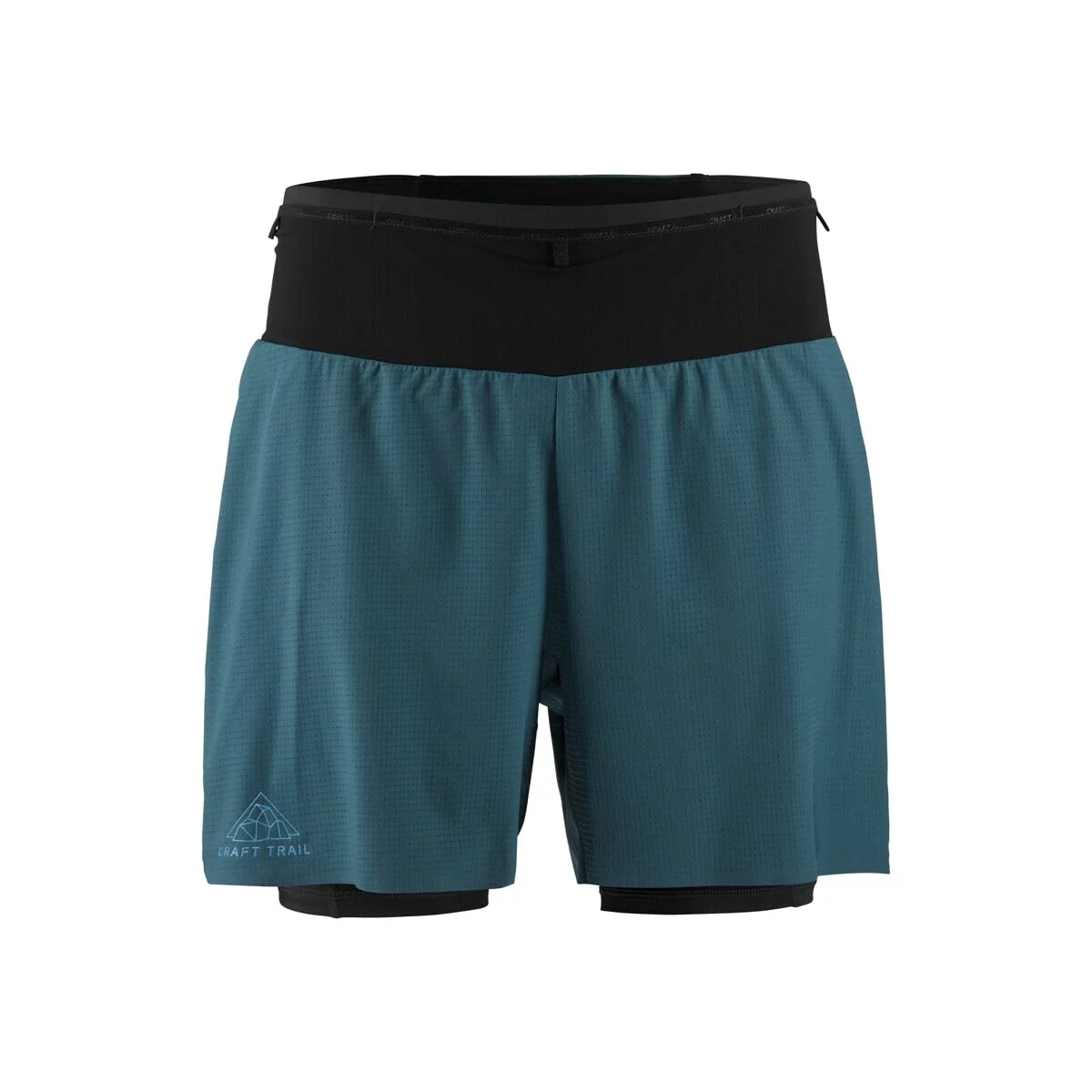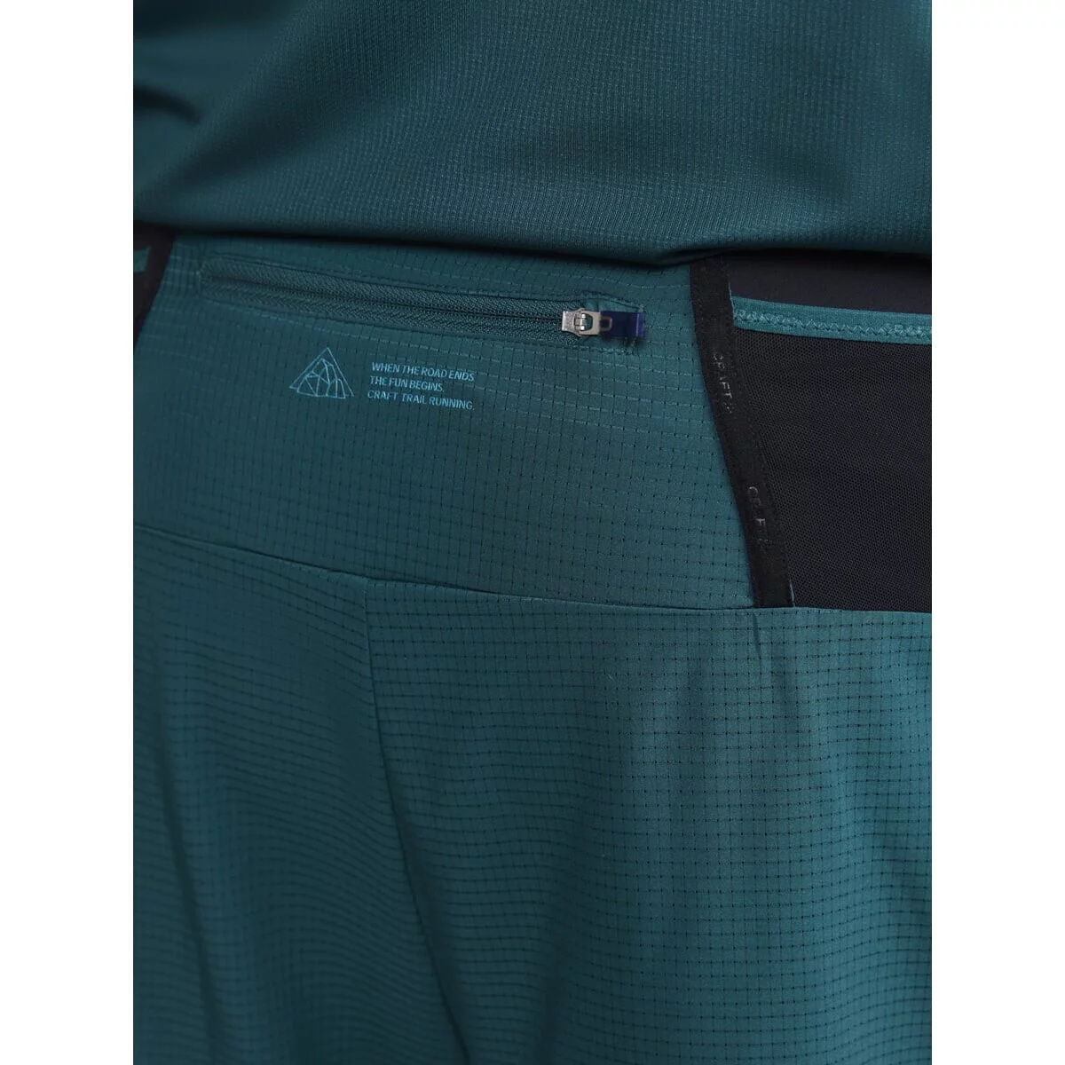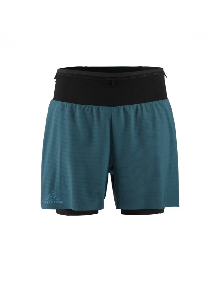 Pánské běžecké kraťasy 2 v 1 CRAFT PRO Trail jsou velmi lehké, prodyšné a poskytují spoustu kapes pro uložení výživy nebo jiných drobností.