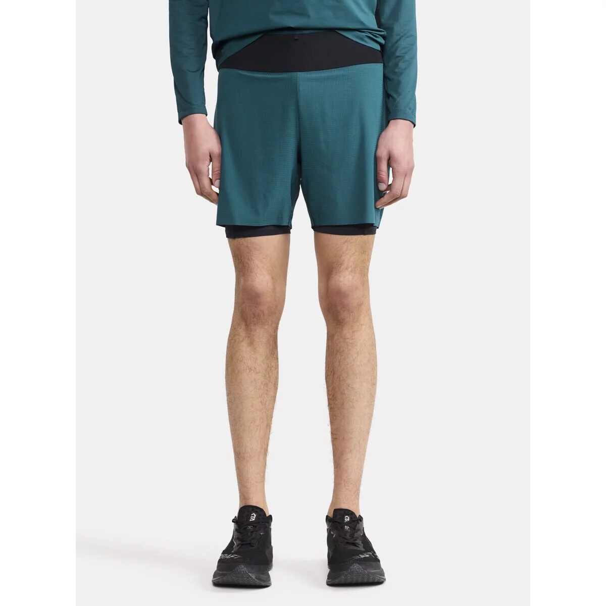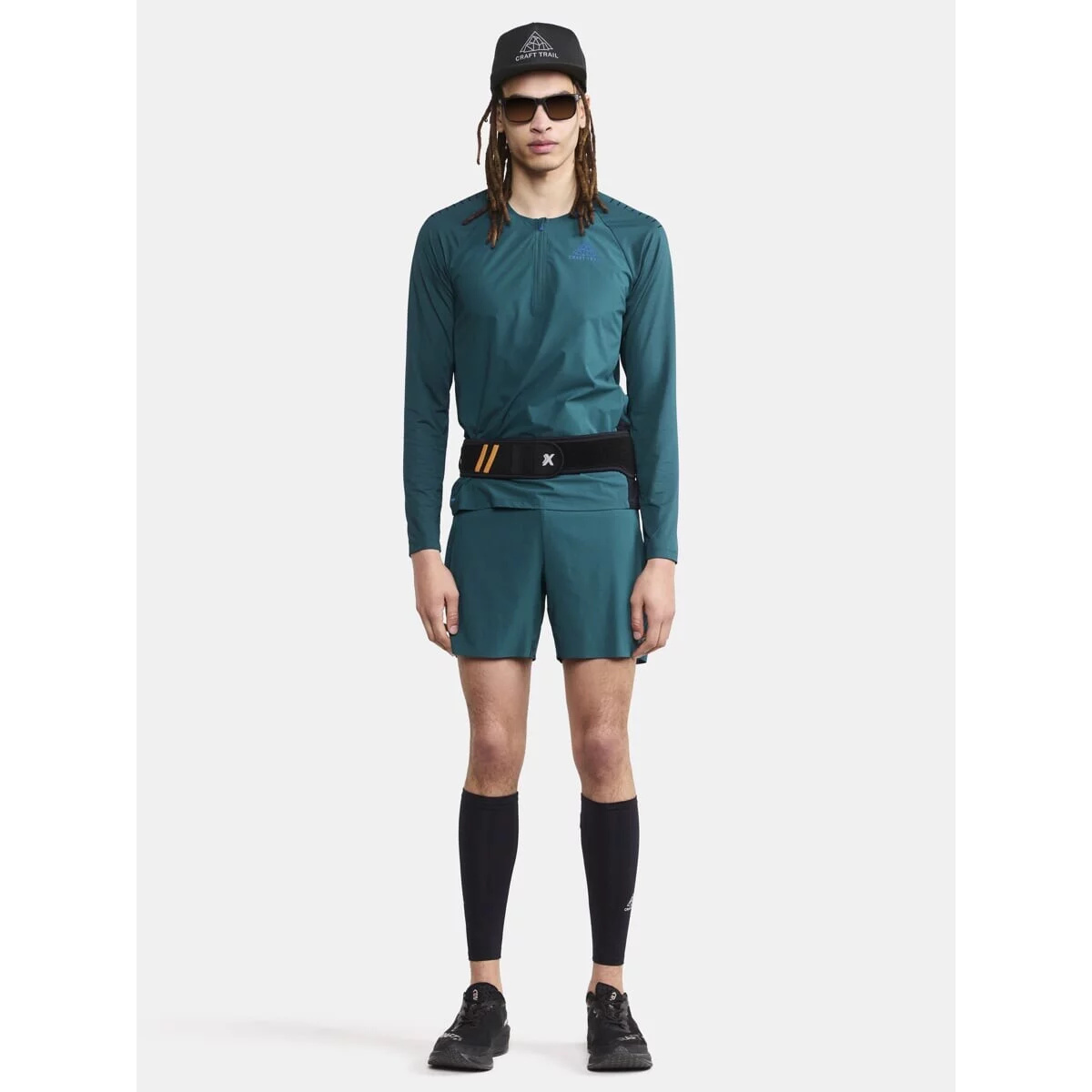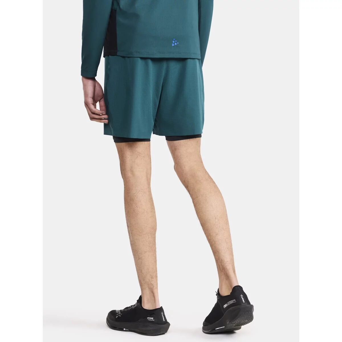 Pánské běžecké kraťasy 2 v 1 CRAFT PRO Trail jsou velmi lehké, prodyšné a poskytují spoustu kapes pro uložení výživy nebo jiných drobností.