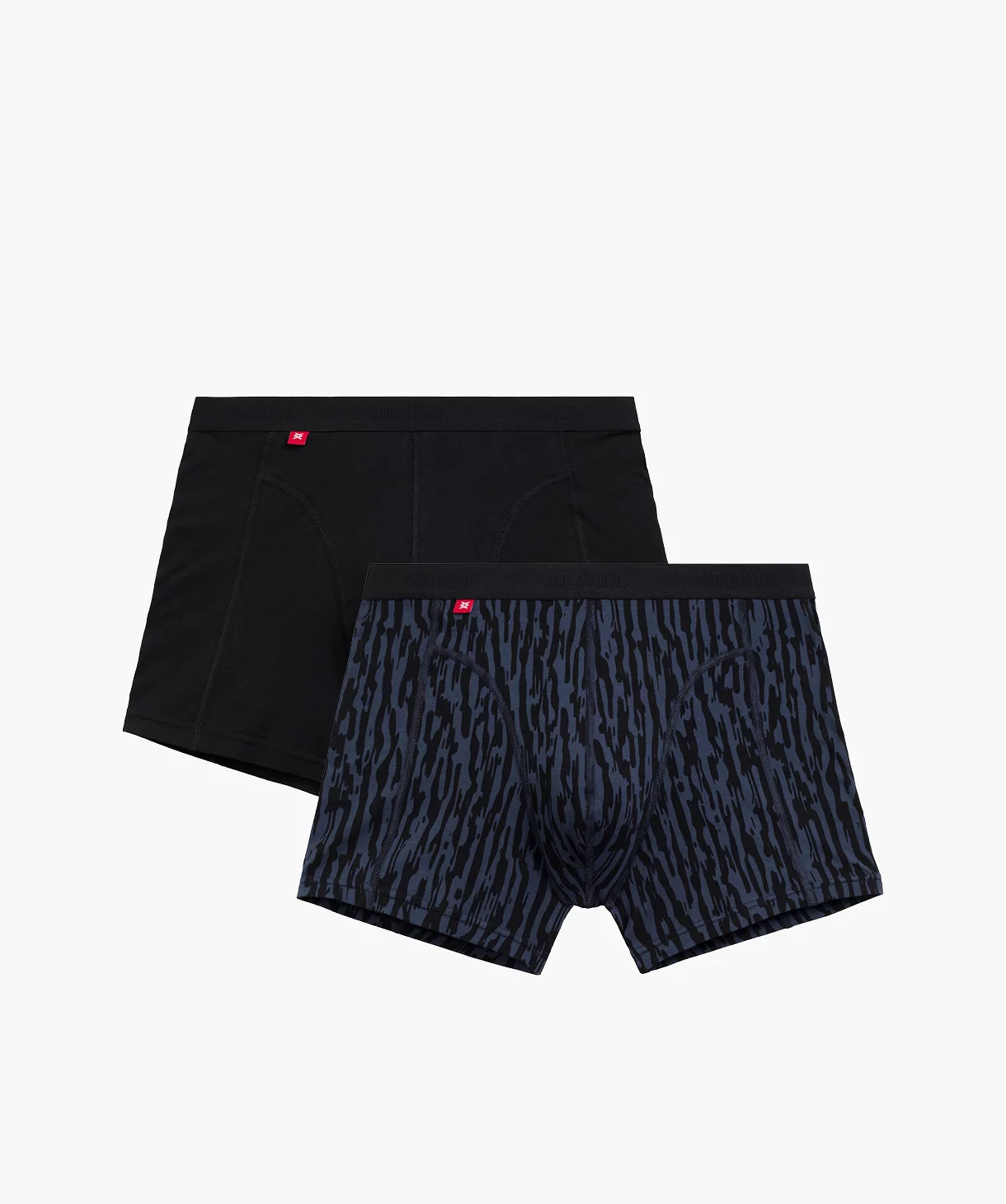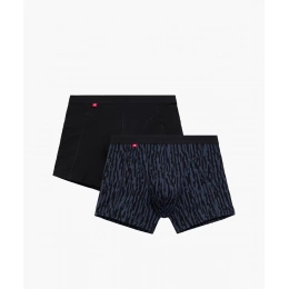 W dwupaku znajdziesz bokserki męskie Comfort w kolorze czarnym (gładkie) i grafitowym (ozdobione graficznym wzorem). Bokserki o sportowym charakterze mają delikatnie wydłużony stan oraz wydłużone, niepodwijające się nogawki, a w talii zaznaczone są miękką i nieuciskającą gumą zewnętrzną ozdobioną napisami Atlantic. Bokserki perfekcyjnie dopasowują się do sylwetki i przylegają do ciała dzięki zastosowaniu w nich zarówno z przodu jak i z tyłu profilujących cięć.