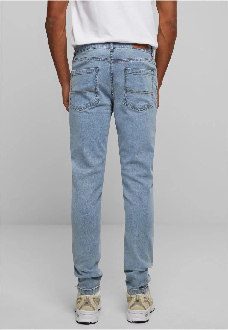 Pánské džíny Slim Fit Tapered ve světle modré barvě nabízejí stylovou a moderní siluetu. Tyto džíny mají zúžený střih (Tapered), což znamená, že jsou přiléhavé v oblasti stehen a postupně se zužují směrem ke kotníkům, což dodává nohám elegantní a prodloužený vzhled. Slim Fit poskytuje komfortní přiléhavost, aniž by byl příliš těsný. Světle modrá barva jim dodává svěží, neformální vzhled, ideální pro každodenní nošení, a snadno se kombinuje s různými kousky v šatníku.