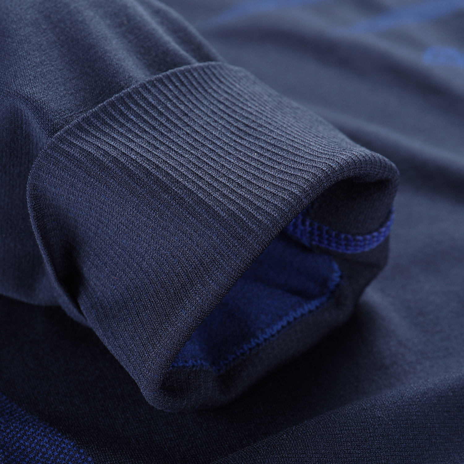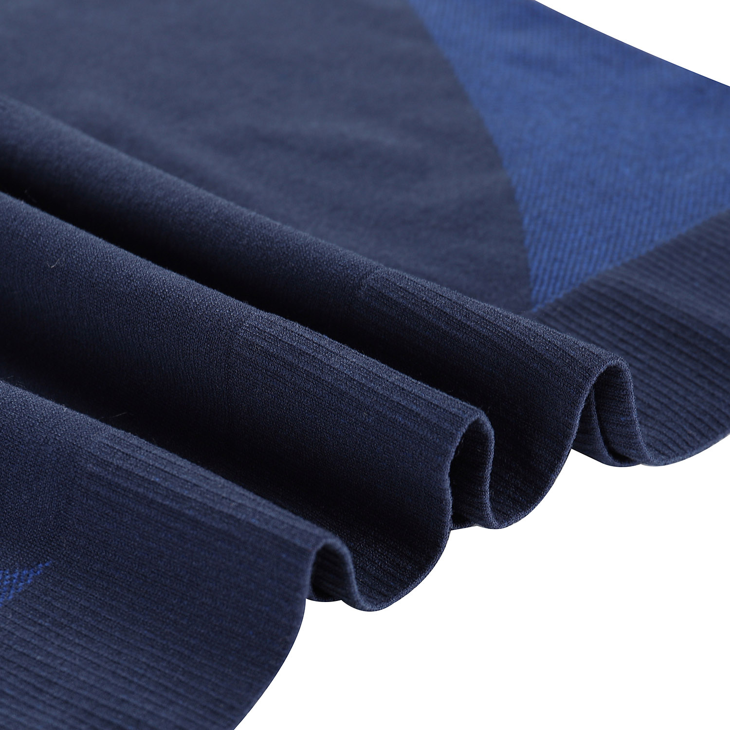 Materiál tvoří směs 65 % polyesteru, 27 % nylonu a 8 % elastanu, která je hřejivá, pružná, rychleschnoucí a zároveň vysoce paropropustná. Strukturovaný povrch pomáhá efektivně odvádět pot od pokožky a udržuje příjemné mikroklima i při intenzivní fyzické zátěži. Ploché švy, které jsou použity pouze v místě napojení rukávů, zvyšují pohodlí a minimalizují riziko podráždění pokožky.