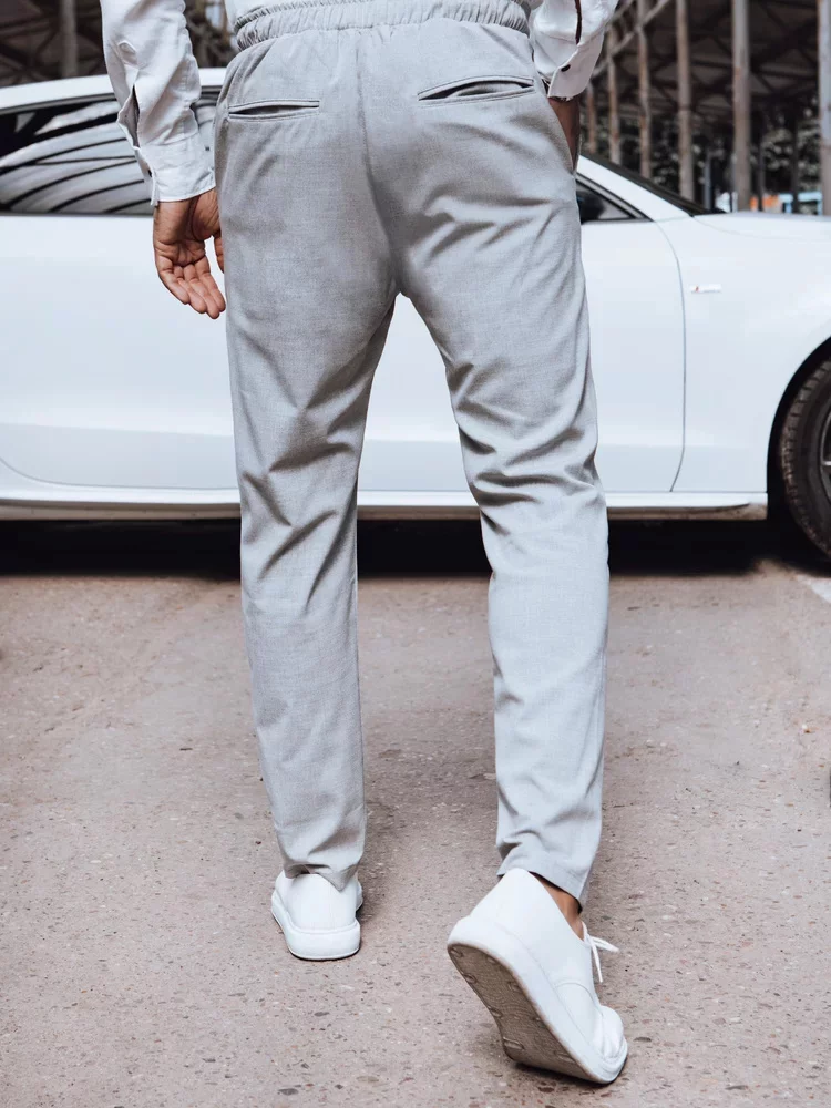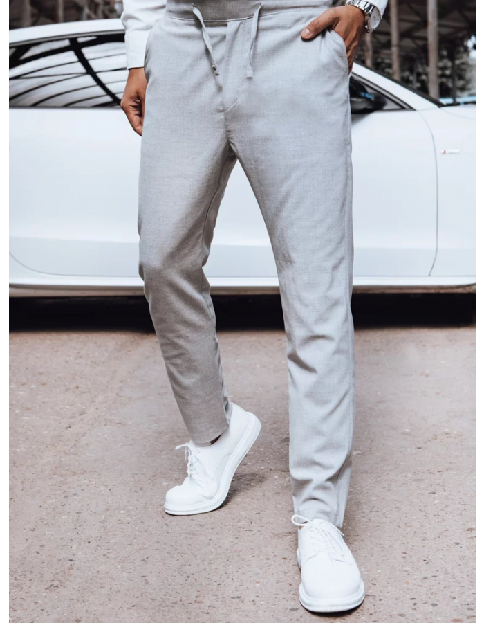 Vyrobené z měkkého, elastického materiálu, zajišťují pohodlí při nošení po celý den. Regulovaný pás a šňůrky umožňují dokonalé přizpůsobení, a klasický střih zajišťuje, že jsou univerzální a hodí se k mnoha stylizacím. Skvěle se osvědčí jak v práci, tak na setkáních s přáteli. Investujte do kalhot, které spojují eleganci a pohodlí.