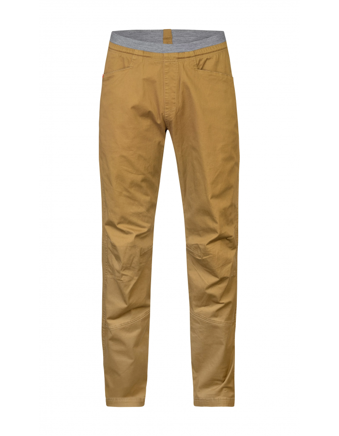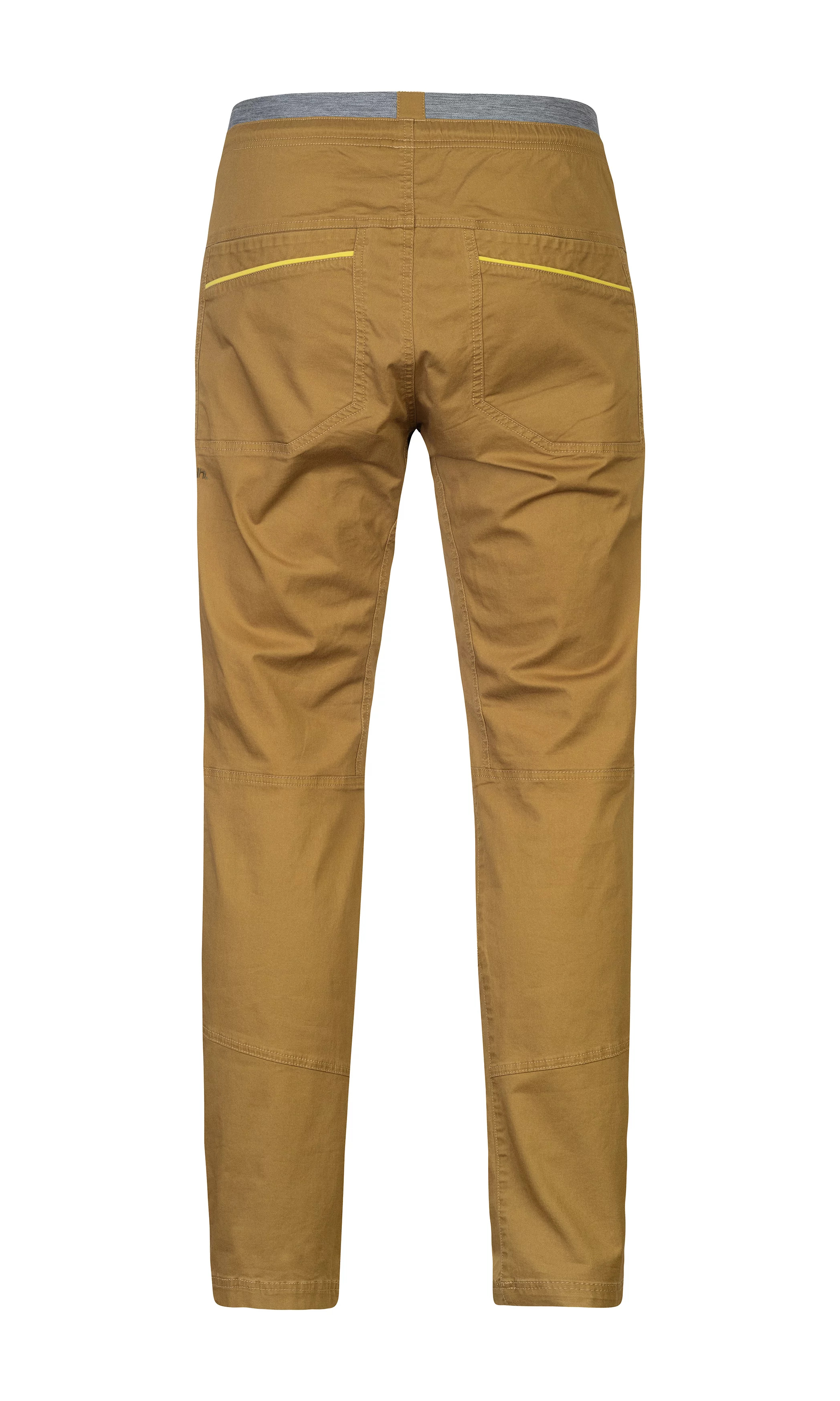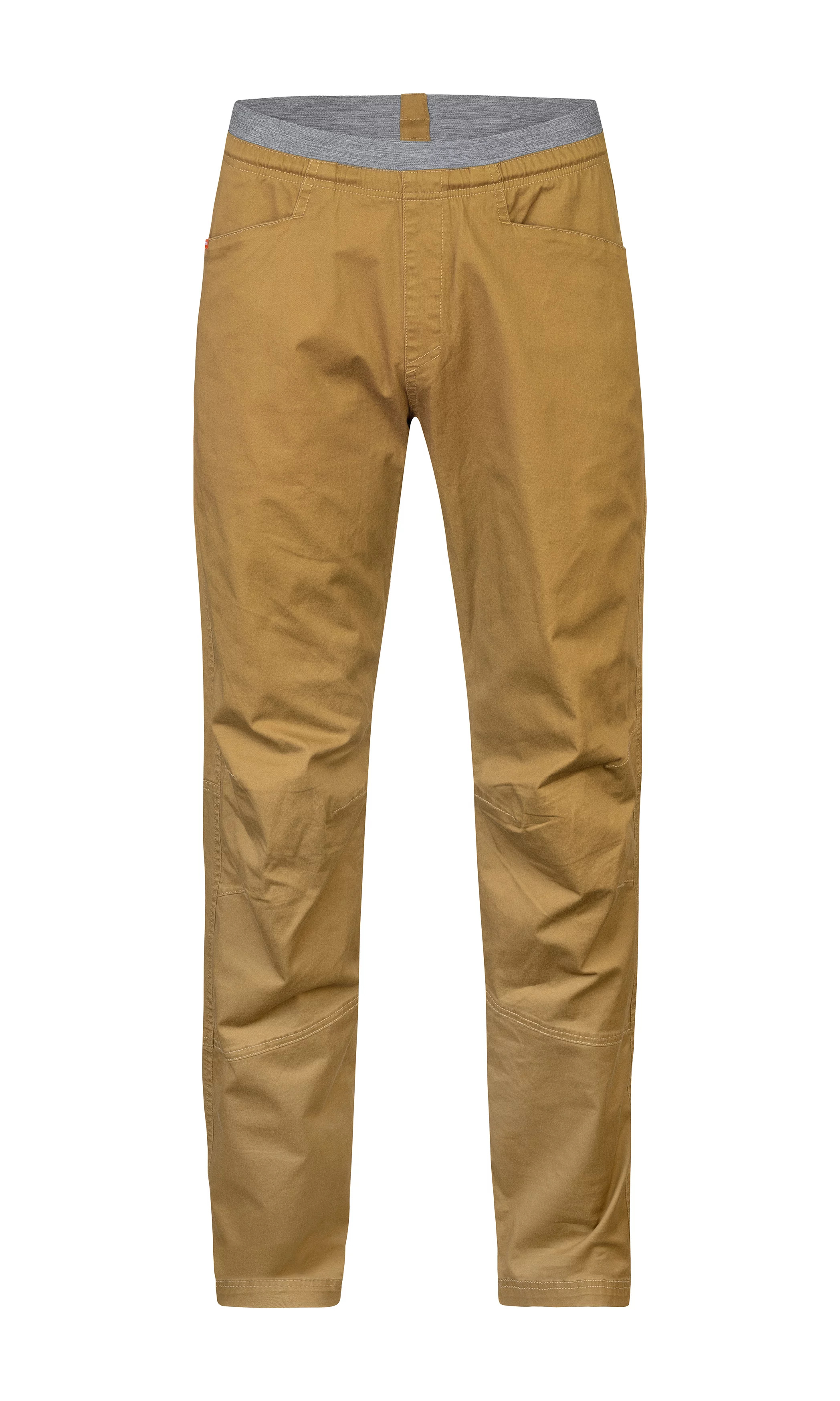 Pánské bavlněné kalhoty technického střihu s anatomicky tvarovanými koleny poskytují volnost pohybu a flexibilitu. Kalhoty jsou vyrobeny z kvalitní bavlny, která je prodyšná a příjemná na dotek, příměs elastanu dodává kalhotům poddajnost. Pas do gumy s regulací na šňůrku umožňuje individuální přizpůsobení a pohodlí během nošení. Kalhoty disponují dvěma rovně šitými kapsami v přední i v zadní části. Designovým prvkem jsou printované vnitřní kapsy. Díky svému univerzálnímu designu jsou kalhoty určené nejen pod skálu a do přírody, ale i pro každodenní nošení.