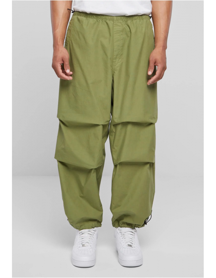 Pánské padákové kalhoty nabízejí široké nohavice se stahovacími šňůrkami se zarážkou v pase a manžetami, které rovněž umožňují individuální přizpůsobení. Dvě boční kapsy s falešnými klopami a záplatovaná kapsa na zadní straně s akcenty, stejně jako s falešnou poklopci. Složená kolena zase vytvoří ještě větší šířku. Padákové kalhoty jsou vyrobeny z hladkého bavlněného popelínu.