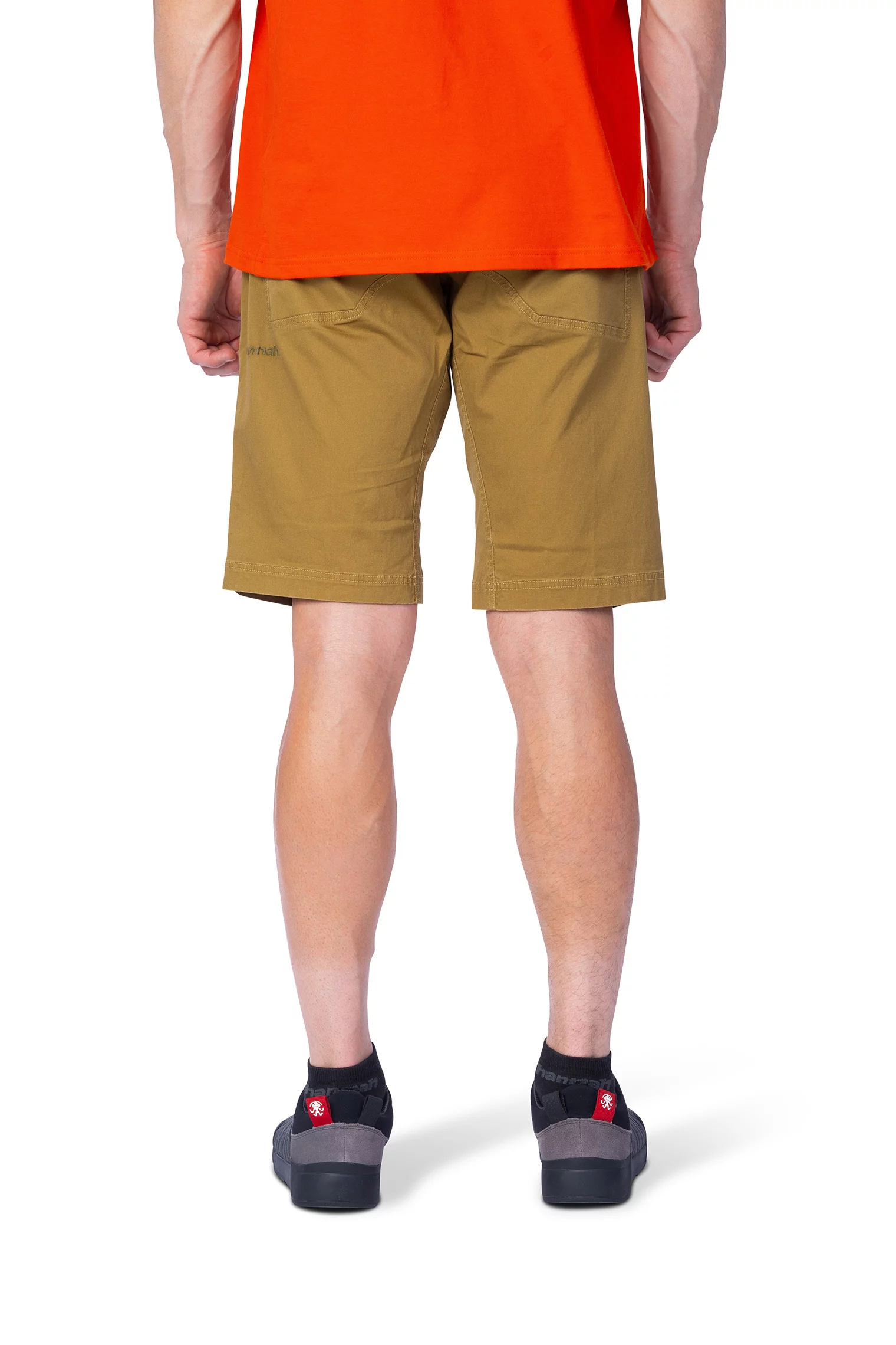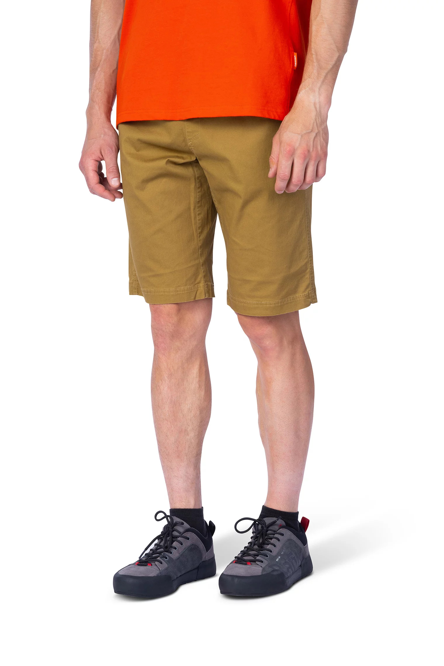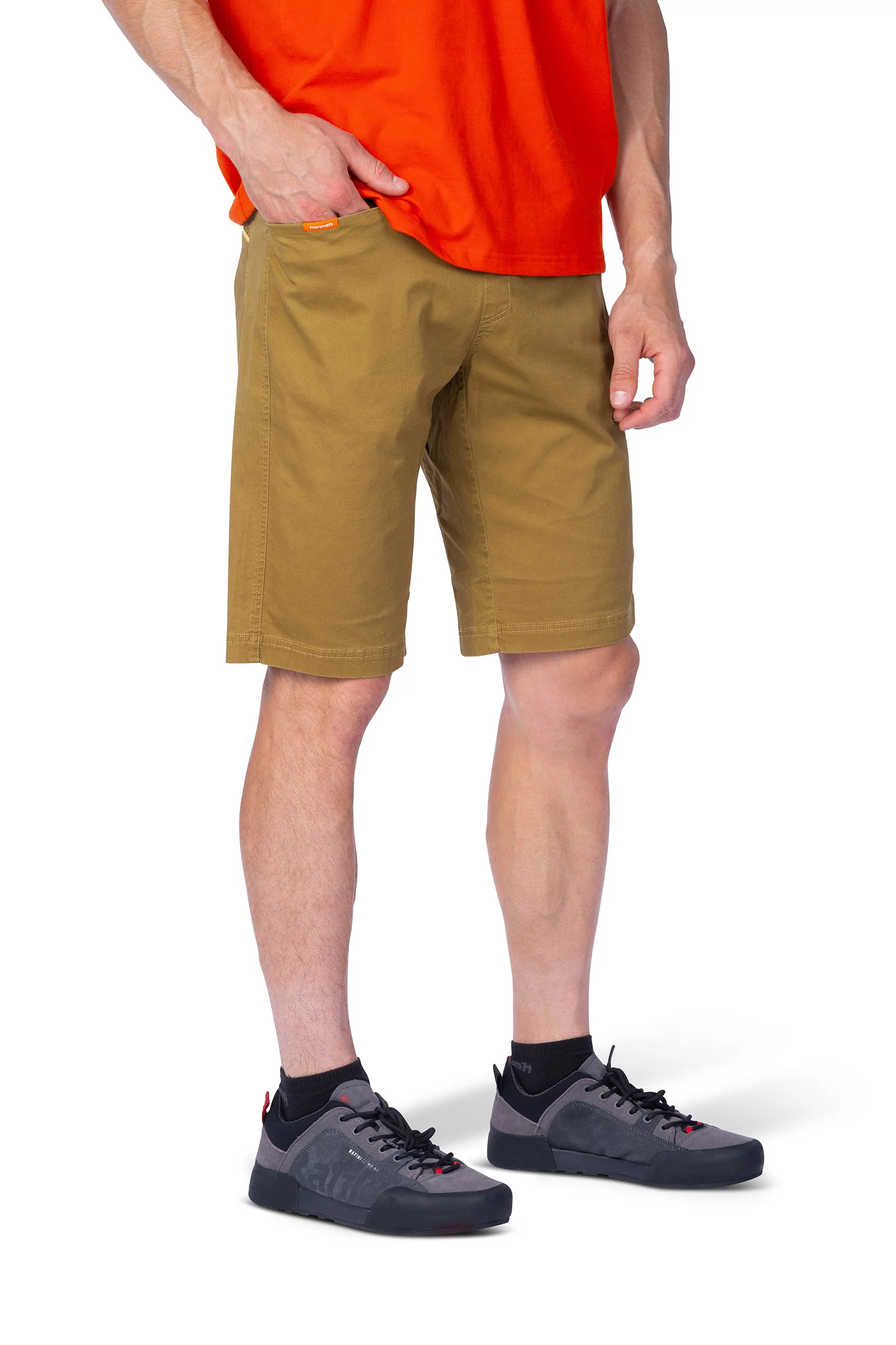 Pánské bavlněné kraťasy technického střihu poskytují volnost pohybu a flexibilitu. Vyrobeny jsou z kvalitní bavlny, která je prodyšná a příjemná na dotek, příměs elastanu dodává kraťasům poddajnost. Pas do gumy s regulací na šňůrku umožňuje individuální přizpůsobení a pohodlí během nošení. Kraťasy disponují dvěma rovně šitými kapsami v přední i v zadní části. Designovým prvkem jsou printované vnitřní kapsy. Díky svému univerzálnímu designu jsou určené nejen pod skálu a do přírody, ale i pro každodenní nošení.