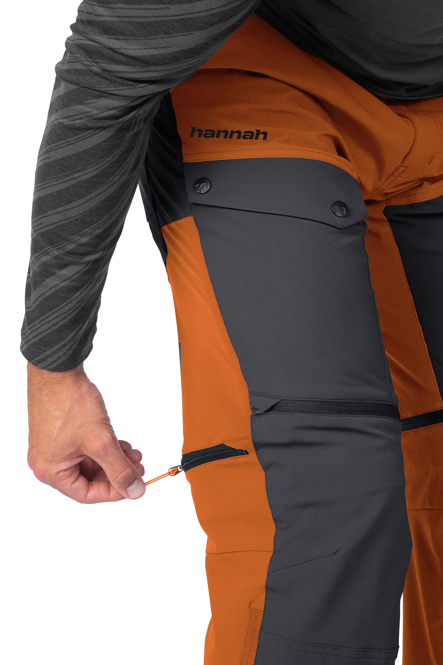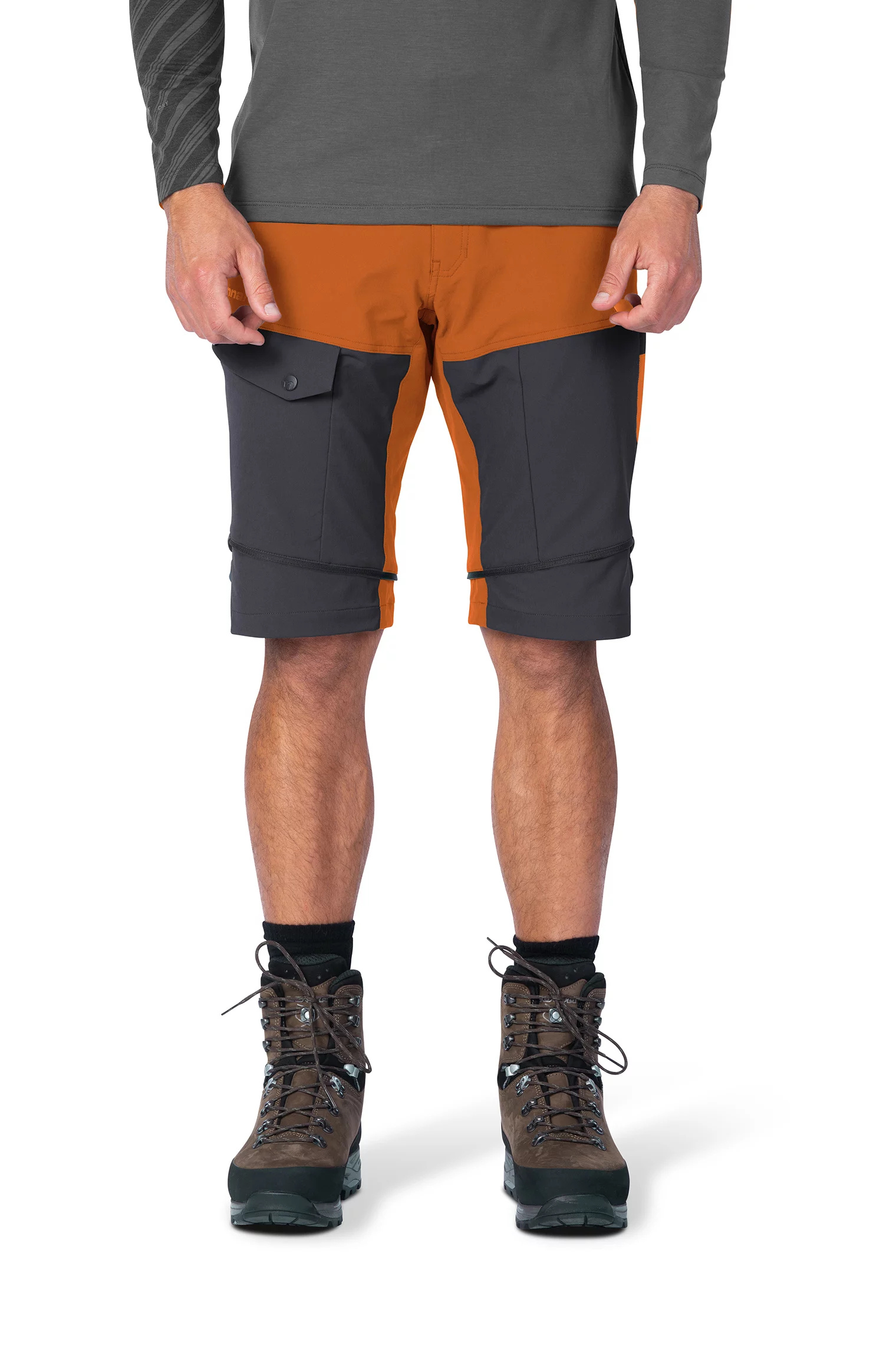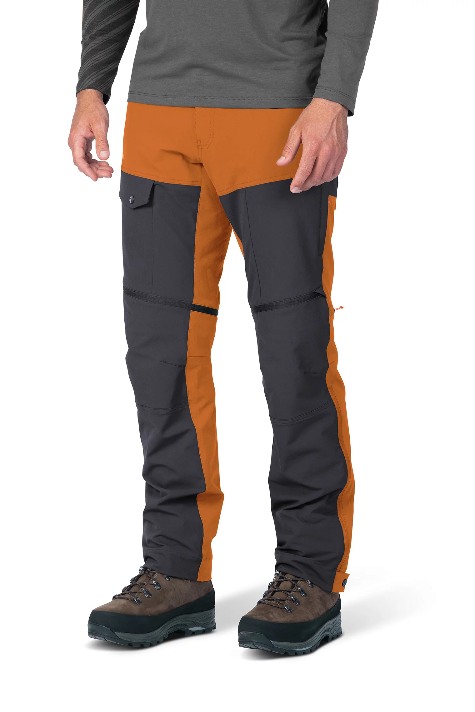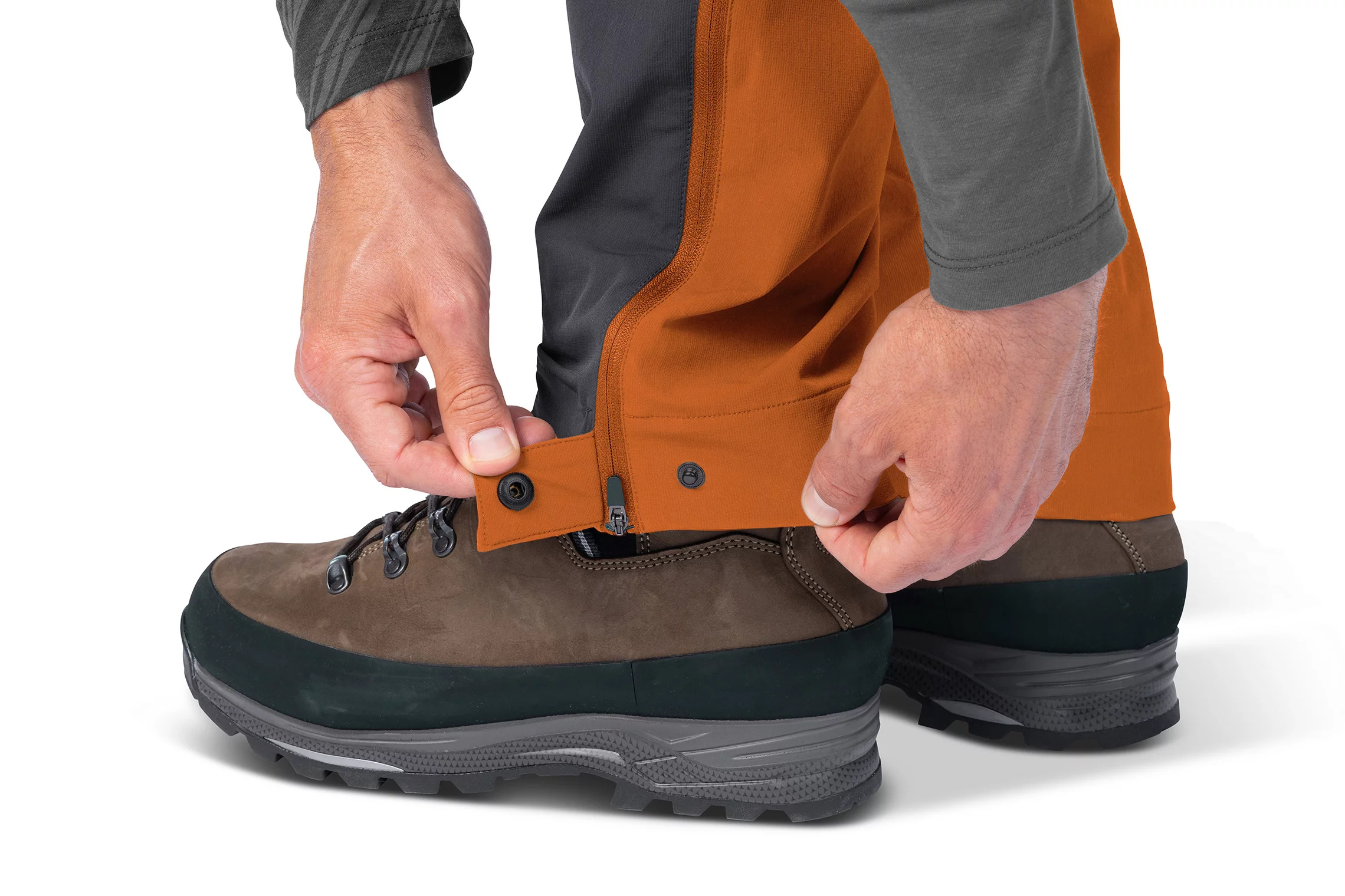 Pánské odepínatelné technické outdoorové kalhoty jsou vyrobeny z mechanicky odolného, větruvzdorného, trvale vodoodpudivého a prodyšného materiálu AFT Double Weave Pro. Povrchová úprava DWR - C0 bez PFC je šetrnější k životnímu prostředí a zajistí nenasákavost vrchního materiálu. Technický střih kalhot má šikmo řešené odepínatelné nohavice s bočním rozepínáním na zip. Odepnutím nohavic jsou z kalhot rázem parádní šortky s délkou lehce nad kolena. Šortky přesahují zip, což zamezuje případnému škrábání zipu. Nohavice mají anatomicky tvarovaná kolena a spodní kraj s regulací šířky na patent, který se přizpůsobí různé botě a potřebám. Kalhoty mají regulovatelnýobvod pasu páskem a disponují kombinací různých typů kapes v přední i zadní části kalhot. V přední části jsou dvě dostatečně hluboké a pohodlné kapsy, na stehnech dvě kapsy na zip. V zadní části pak kalhoty disponují dvěma níže posazenými hlubokými kapsami, které kromě praktické funkce mají i funkci designovou. Nový materiál AFT Double Weave Pro klade kromě již zmíněných technických parametrů důraz na aspekt udržitelné výroby. Materiál je navíc ošetřen povrchovou vodoodpudivou úpravou, která je bez fluorkarbonů, a tím je šetrnější k životnímu prostředí (PFC free). Certifikace Bluesign je zárukou transparentnosti a využití zdrojů šetrných k životnímu prostředí při výrobě. Kalhoty jsou ideální na vícedenní turistiku a náročný pohyb v horách.