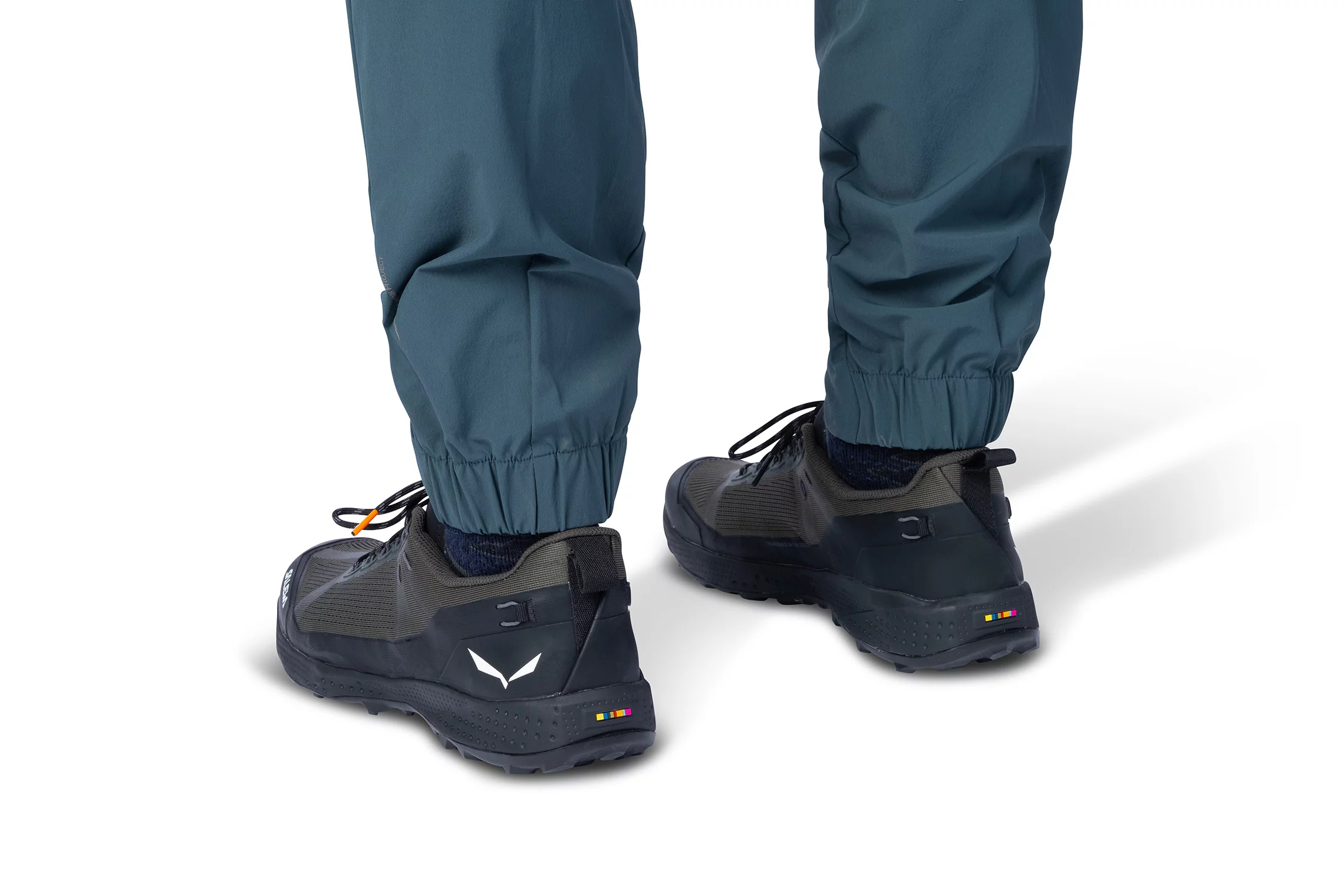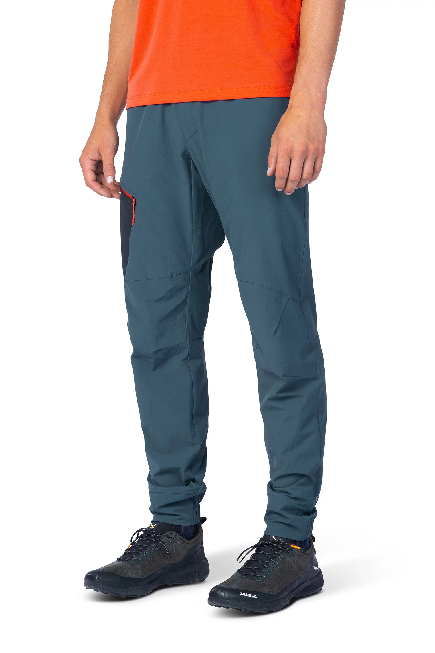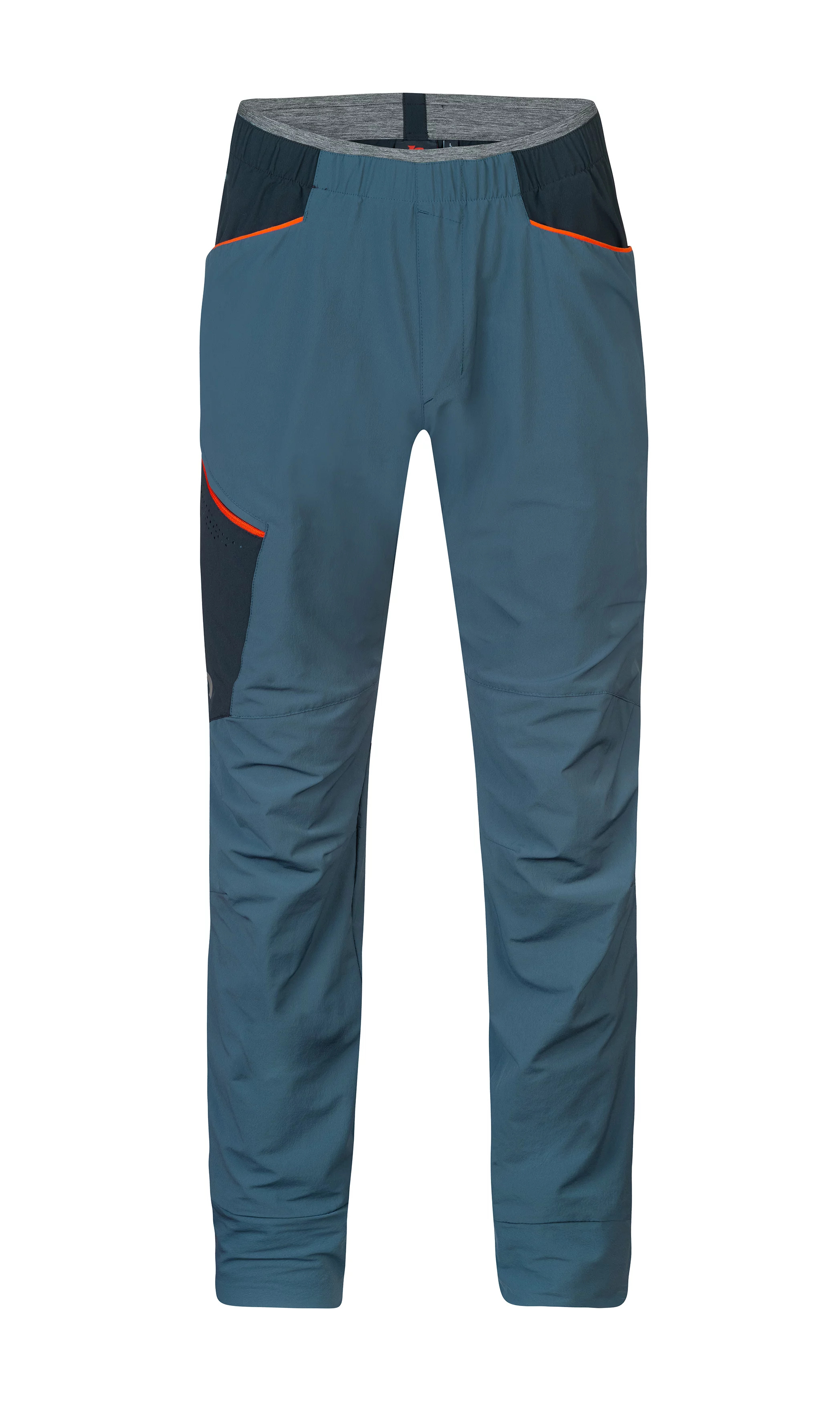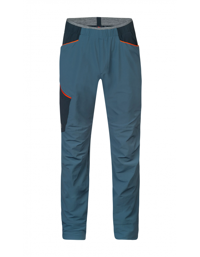 Pánské lehoučké a zároveň vysoce mechanicky odolné kalhoty pro širokou škálu letních outdoorových aktivit. Příjemný elastický pas do gumy má integrovanou šnůrku pro ještě lepší přizpůsobení obvodu pasu. Ergonomický střih kalhot, natvarovaná kolena a vysoce elastický materiál pro svobodný, neomezený pohyb. Dolní lem nohavic je lehce zúžený a na zadní straně stažený do gumy. Kalhoty disponují dvěma prostornými kapsami v přední částí a jednou stehenní kapsou na YKK zip. Designovým prvkem jsou printované vnitřní kapsy. Materiál kalhot je navíc ošetřen povrchovou vodoodpudivou úpravou (DWR-C0), která je bez fluorkarbonů, a tím je šetrnější k životnímu prostředí (PFC free).