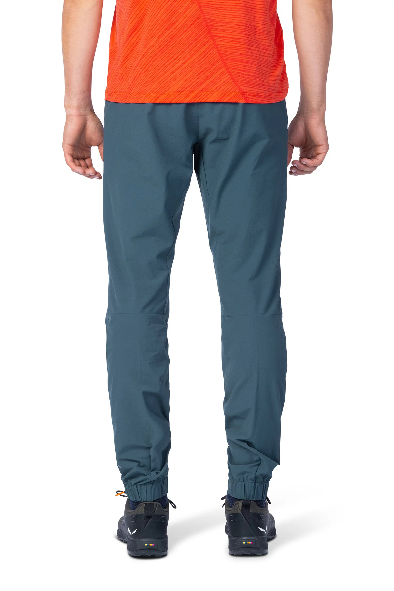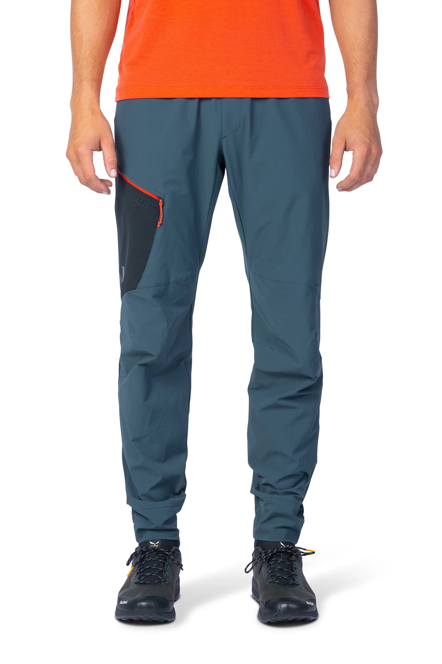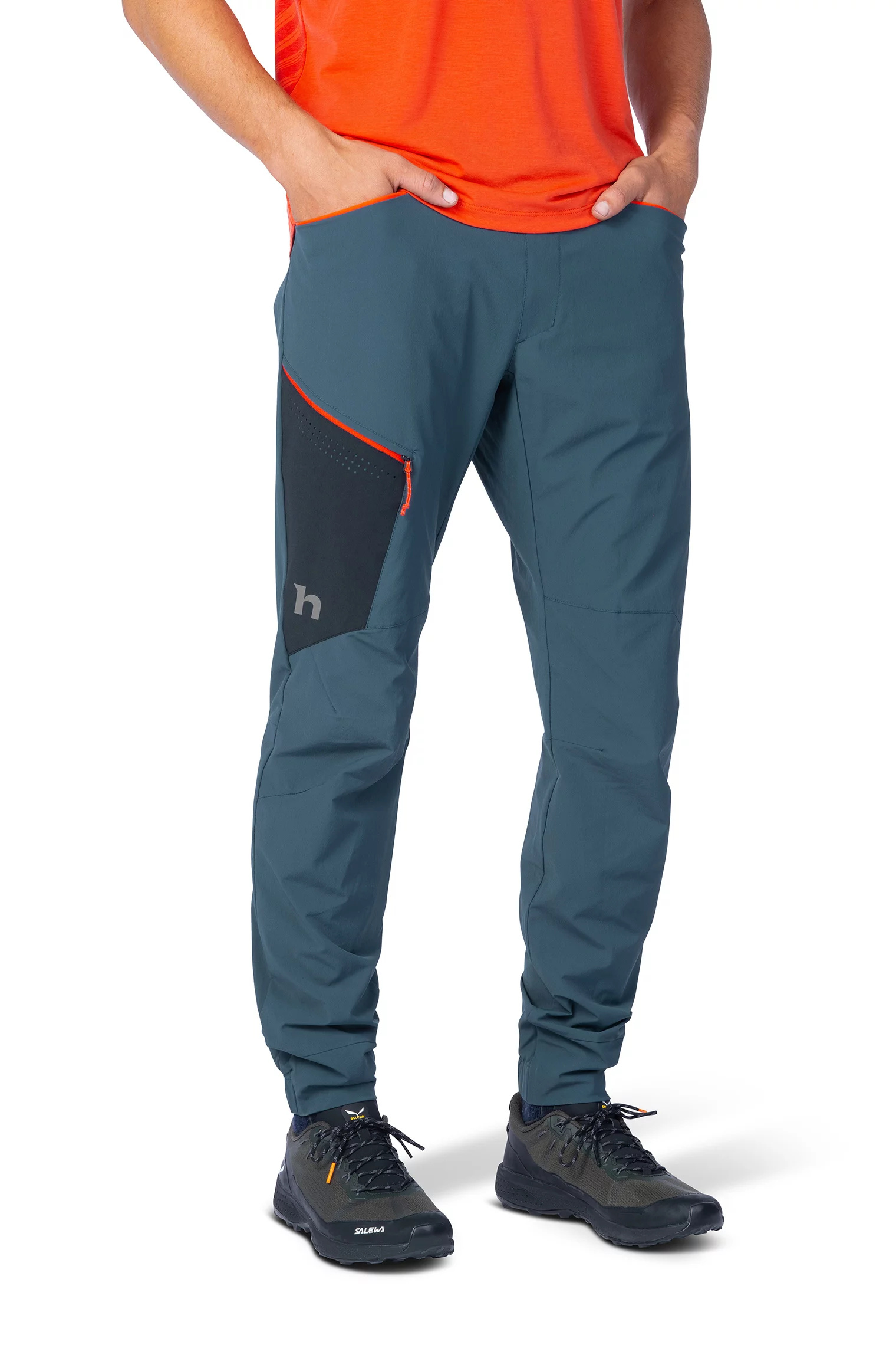 Pánské lehoučké a zároveň vysoce mechanicky odolné kalhoty pro širokou škálu letních outdoorových aktivit. Příjemný elastický pas do gumy má integrovanou šnůrku pro ještě lepší přizpůsobení obvodu pasu. Ergonomický střih kalhot, natvarovaná kolena a vysoce elastický materiál pro svobodný, neomezený pohyb. Dolní lem nohavic je lehce zúžený a na zadní straně stažený do gumy. Kalhoty disponují dvěma prostornými kapsami v přední částí a jednou stehenní kapsou na YKK zip. Designovým prvkem jsou printované vnitřní kapsy. Materiál kalhot je navíc ošetřen povrchovou vodoodpudivou úpravou (DWR-C0), která je bez fluorkarbonů, a tím je šetrnější k životnímu prostředí (PFC free).