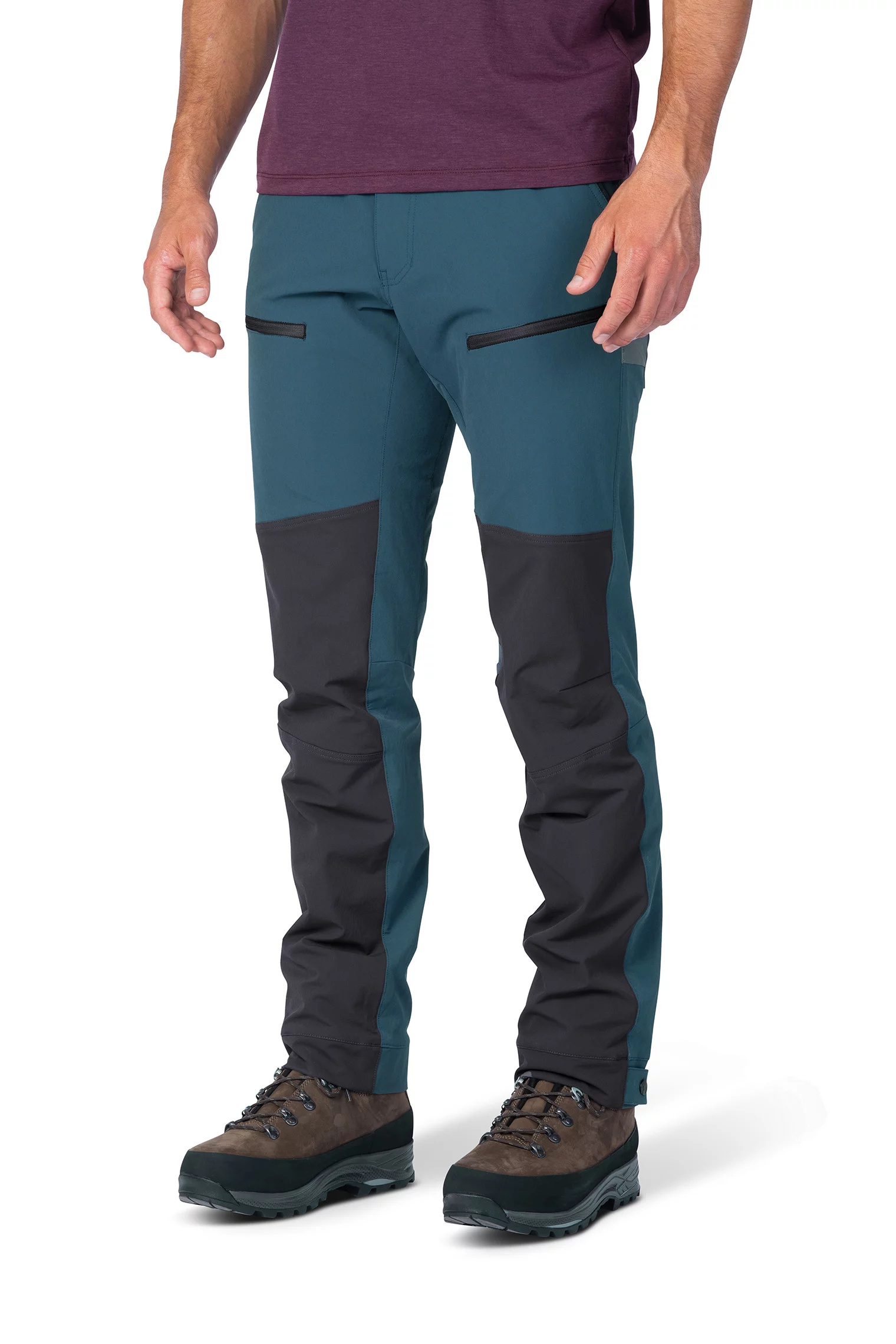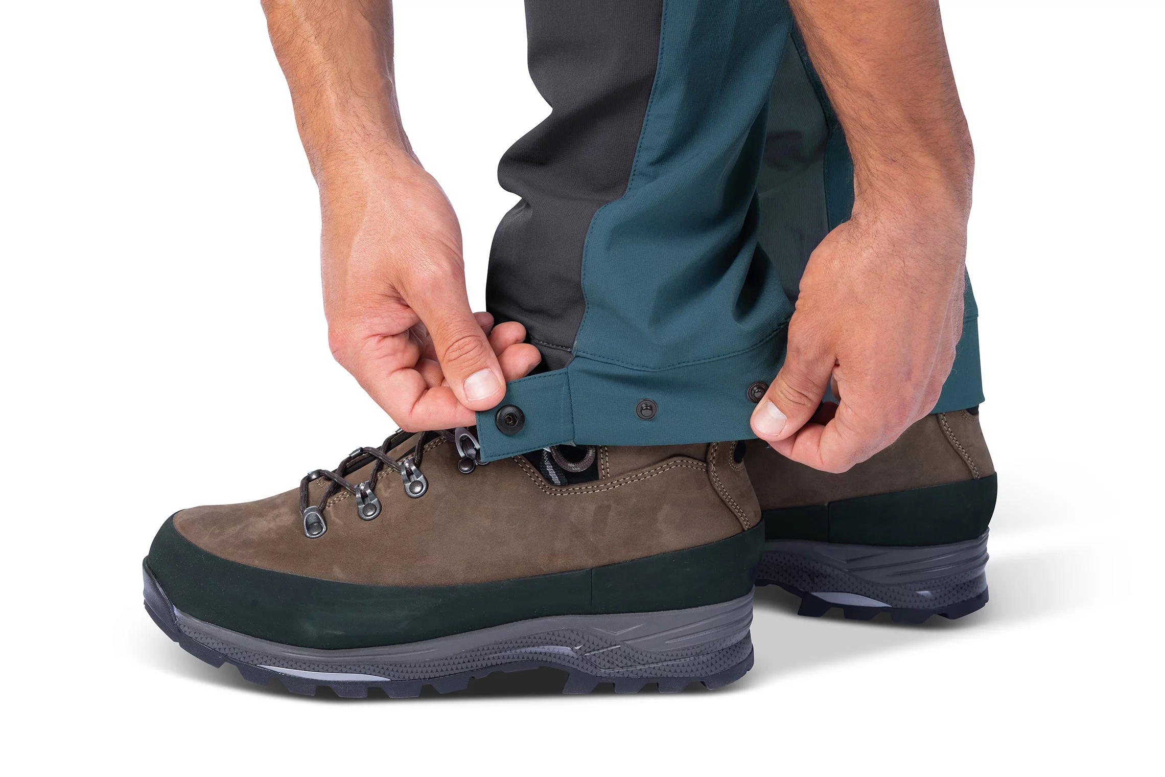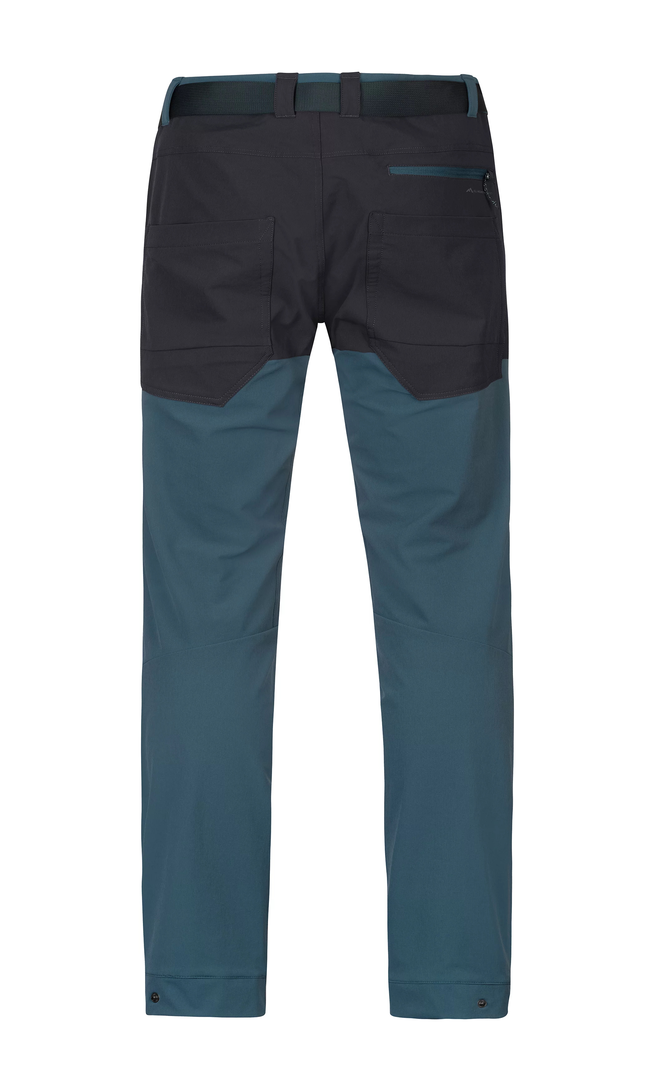 Pánské technické outdoorové kalhoty jsou vyrobeny z mechanicky odolného, větruvzdorného, trvale vodoodpudivého a prodyšného materiálu AFT Double Weave Pro. Povrchová úprava DWR - C0 bez PFC je šetrnější k životnímu prostředí a zajistí nenasákavost vrchního materiálu. Technický střih kalhot s anatomicky tvarovanými koleny a regulovatelným obvodem pasu s páskem. Kalhoty disponují kombinací různých typů kapes v přední i zadní části kalhot. V přední části jsou dvě dostatečně hluboké a pohodlné kapsy, na stehnech dvě kapsy na zip. V zadní části pak kalhoty disponují jednou kapsou na zip a dvěma níže posazenými hlubokými kapsami, které kromě praktické funkce mají spíše funkci designovou. Spodní kraj nohavice s regulací šířky na patent se přizpůsobí různé botě a potřebám. Nový materiál AFT Double Weave Pro klade kromě již zmíněných technických parametrů důraz na aspekt udržitelné výroby. Materiál je navíc ošetřen povrchovou vodoodpudivou úpravou, která je bez fluorkarbonů, a tím je šetrnější k životnímu prostředí (PFC free). Certifikace Bluesign je zárukou transparentnosti a využití zdrojů šetrných k životnímu prostředí při výrobě. Kalhoty jsou ideální na vícedenní turistiku a náročný pohyb v horách.