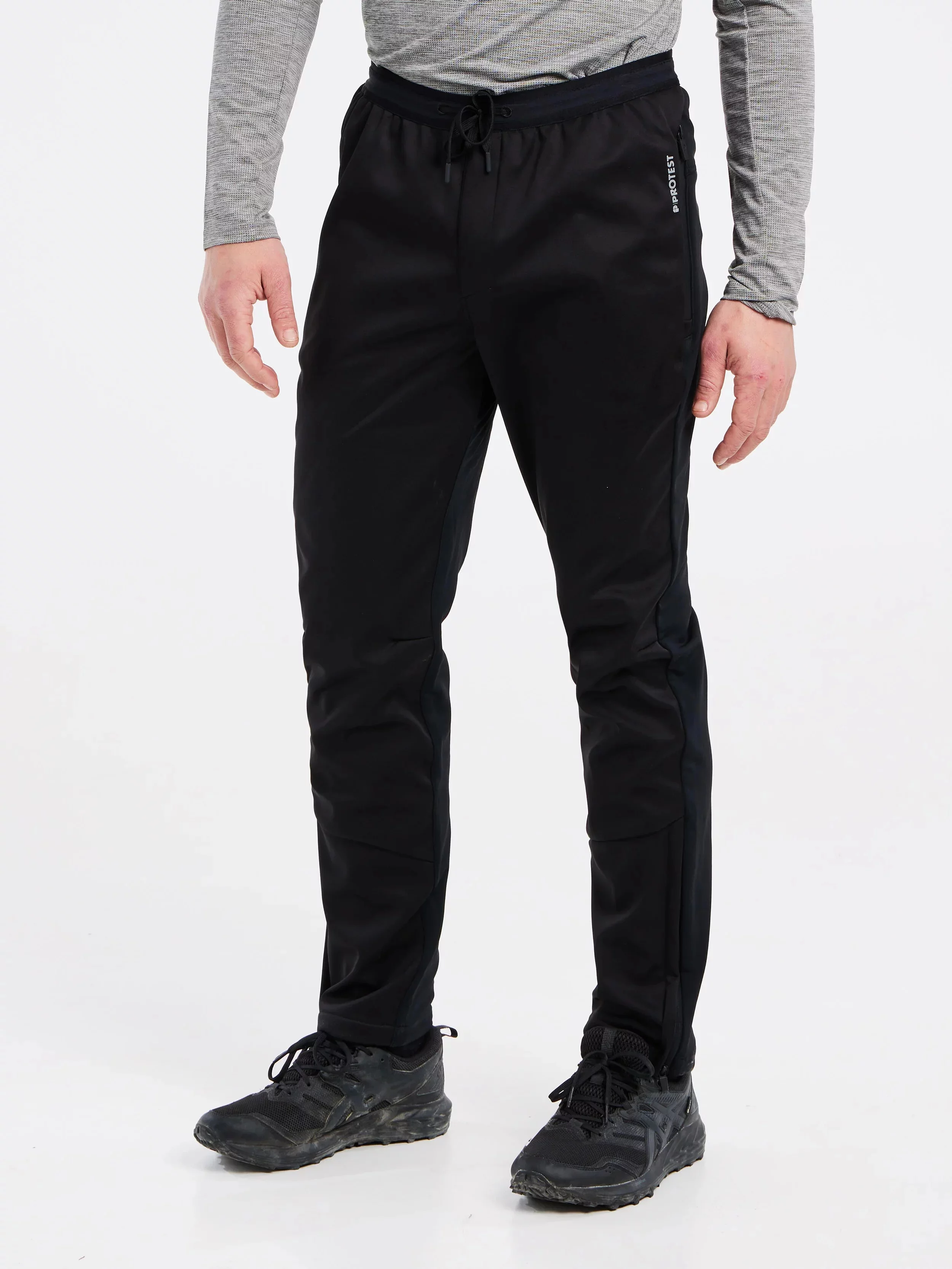 Přední část kalhot je odolná vůči počasí a je vyrobena z vynikajícího softshellového materiálu. Tento chytrý materiál se skládá ze tří spojených vrstev, z nichž každá má svou specifickou funkci: jedna vrstva je odolná vůči větru a vodě, střední vrstva je voděodolná a prodyšná, a vnitřní vrstva poskytuje izolaci. Softshellová vrstva má vodní odolnost 5K a prodyšnost 5g.