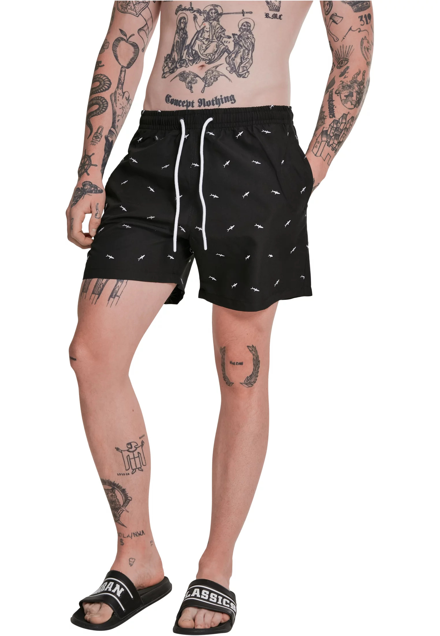 Pánské plavky s výšivkou žralok/černá/bílá Velikost: S