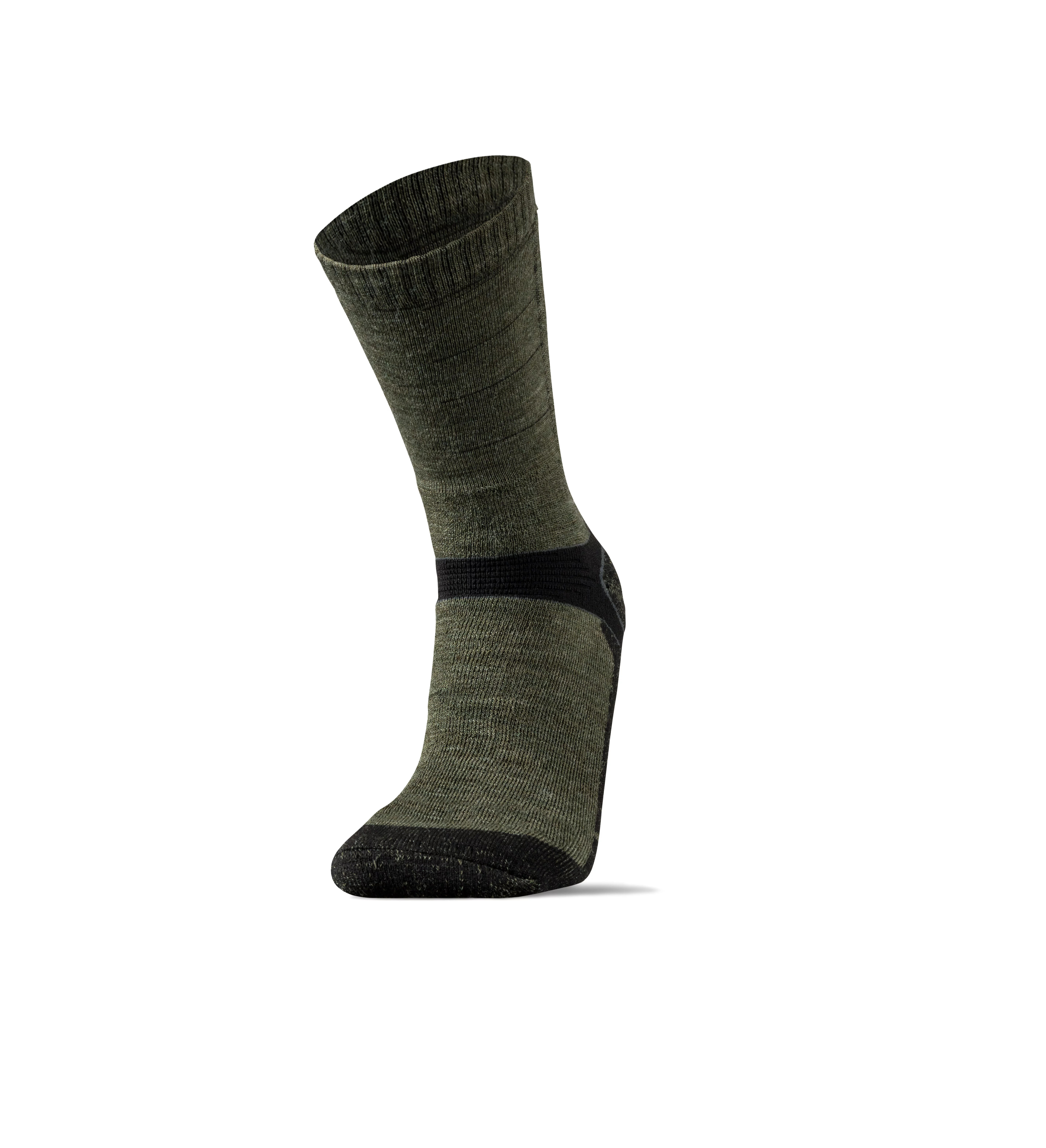 Vysoké technicky řešené sportovní ponožky, které poskytují maximální komfort při turistice i v náročných podmínkách. Fixační zóny přes nárt a kolem kotníku drží ponožku přesně na svém místě. Odvod vlhkosti, odolnost vůči zápachu, pevnost a pružnost zajistí kombinace použitých vysoce kvalitních materiálů. Zesílená oblast špičky a paty zajišťuje ochranu chodidel. Navrženo a ušito v České republice z renomované Merino Schoeller příze.