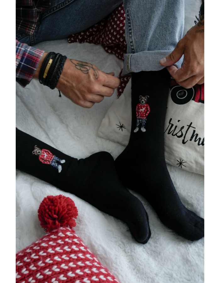 Pánské černé ponožky s motivem medvídka v brýlích jsou pohodlným doplňkem pro každodenní nošení, který outfit nenápadně oživí hravým detailem. Černý základ působí univerzálně a prakticky, takže se ponožky dobře kombinují s většinou oblečení i obuvi. Motiv medvídka dodá ponožkám originální vzhled a hodí se do tenisek i běžné městské obuvi do práce, do školy nebo na volný čas.
