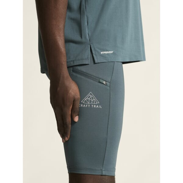 Pánské krátké elastické kalhoty CRAFT PRO Trail Short Tights 2 jistě splní požadavky i velmi náročných běžců. Jsou vyrobeny z odolného, elastického, ale přitom vysoce funkčního materiálu. V bederní části jsou tři meshové kapsy. Ty doplňuje větší kapsa na zip na pravém stehně. Do té se bez problémů vejde i větší mobilní telefon.
