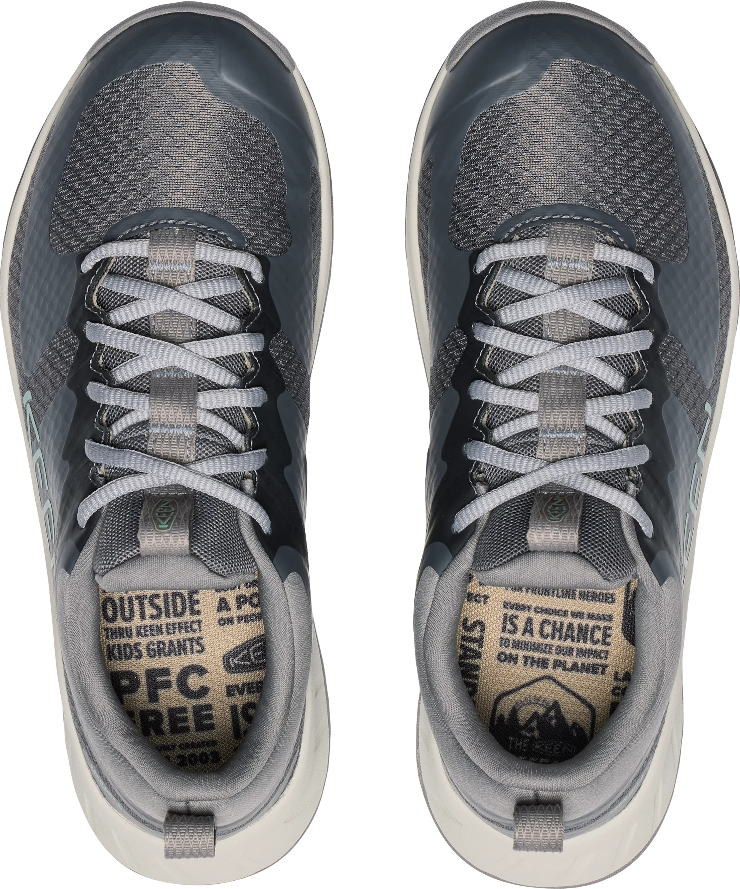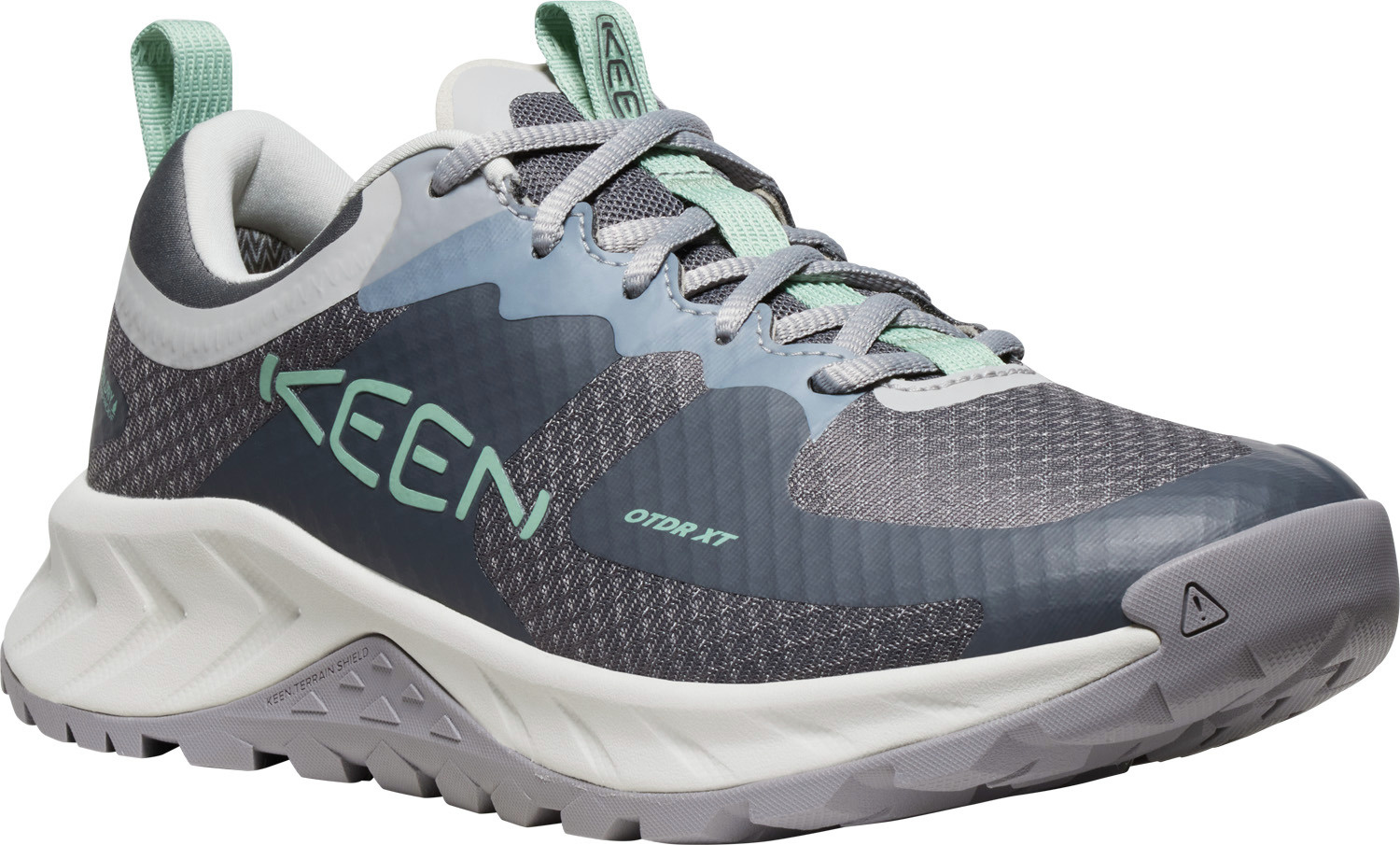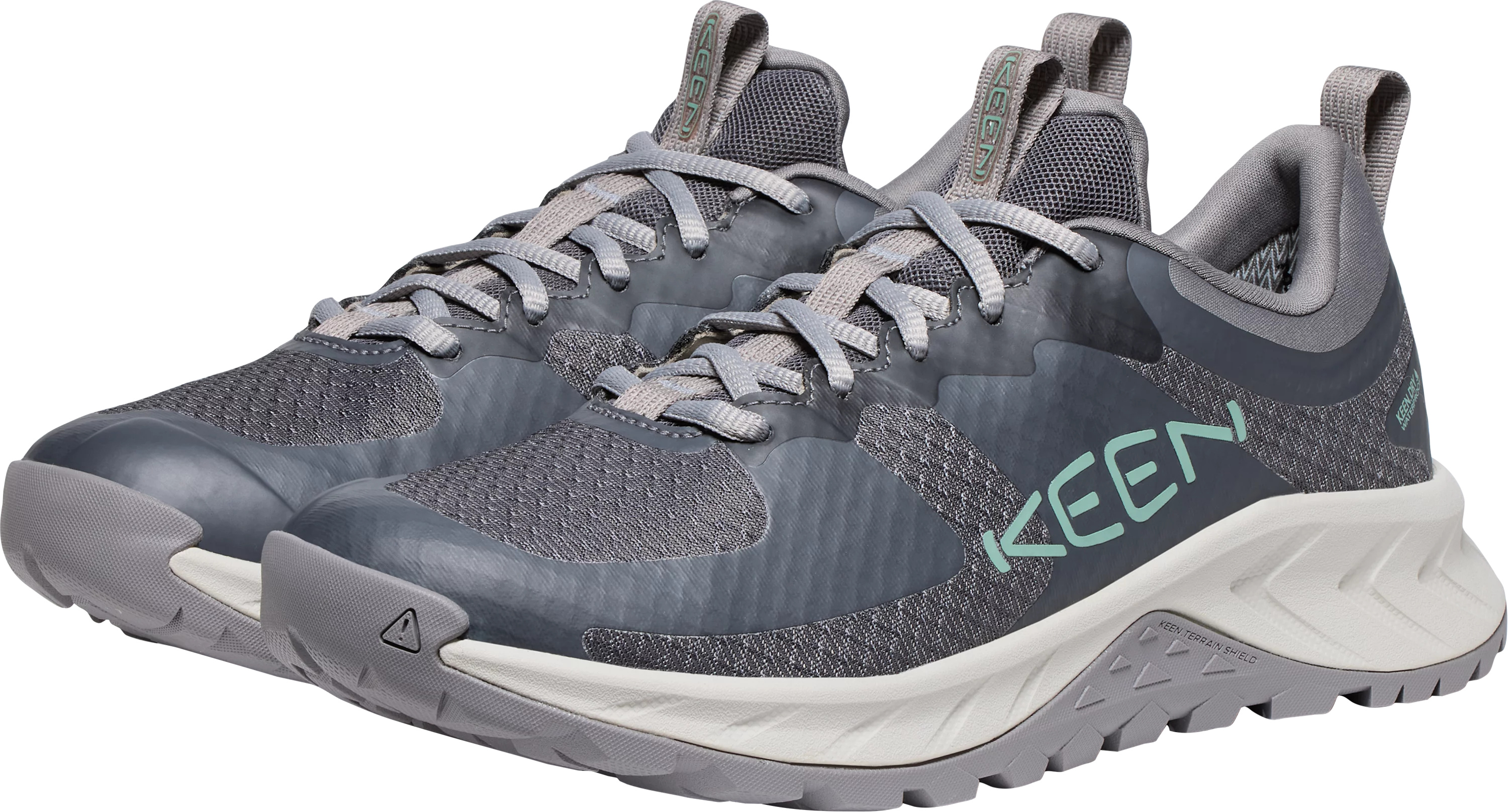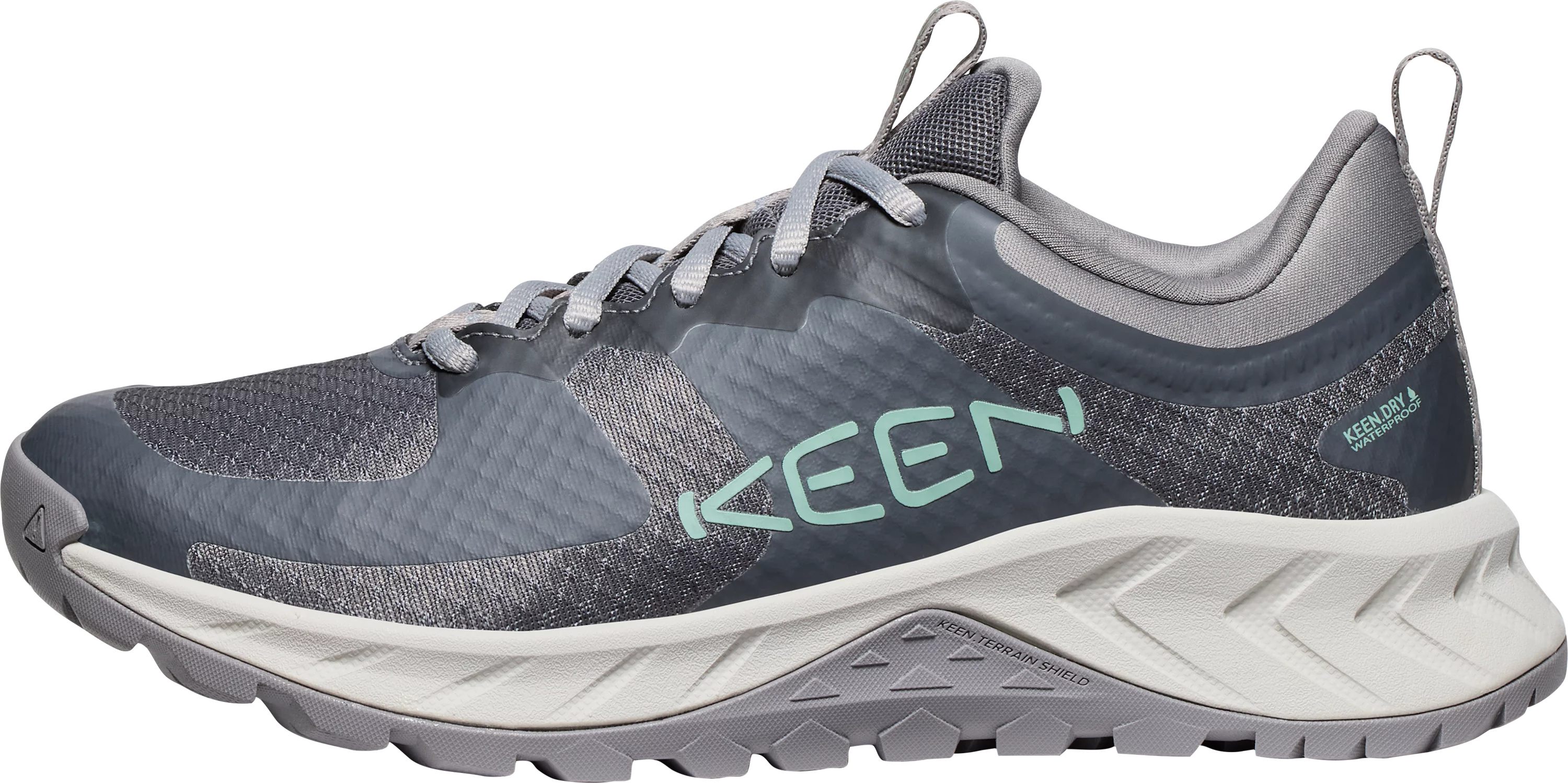 Nízká dámská bota pro sportovní turistiku zaručuje nepromokavost díky voděodolné prodyšné membráně KEEN.DRY a ekologické voděodolné úpravě DWR bez škodlivých chemikálií PFAS. Podešev KEEN.ALL-TERRAIN s vícesměrným vzorkem a výstupky vás podrží v různém terénu. Pohodlná vyjímatelná stélka, mezipodešev a strobel z pružné EVA pěny pro extra odpružení a vyměkčení zaručují komfortní nošení po celý den. S Original Fit ikonickým střihem KEEN máte ve špičce boty dostatek místa pro volný pohyb prstů. Bota je ošetřená technologií Eco Anti-Odor pro přirozenou kontrolu zápachu na bázi probiotik.