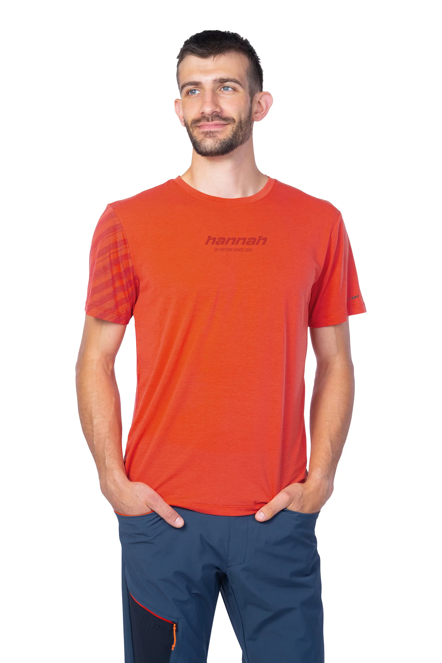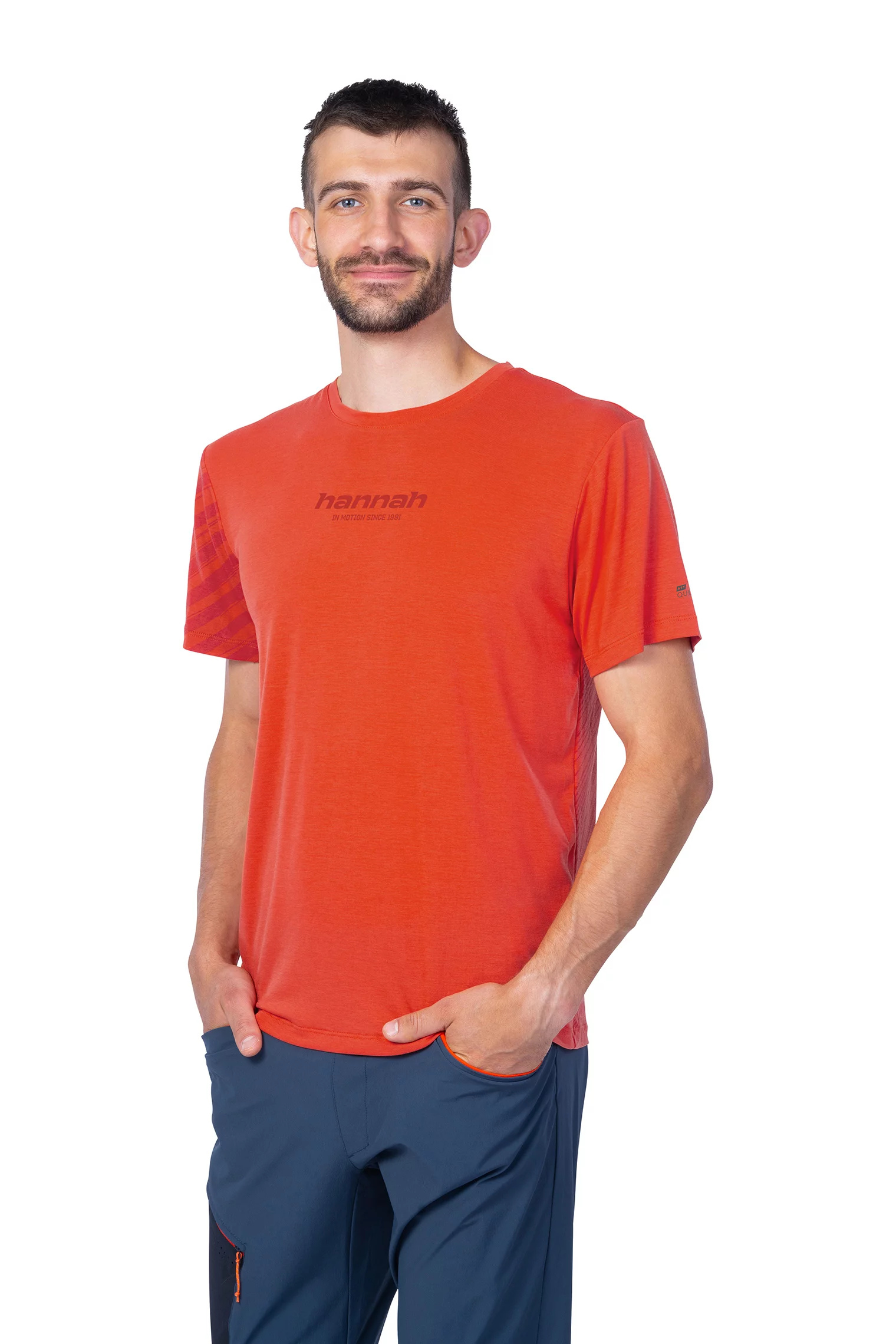 Pánské triko Hannah Bine s krátkým rukávem a stylovým potiskem na prsou jsme pro vás vyrobili z velice populárního funkčního materiálu AFT Quick Dry. Tričko velice rychle schne, je prodyšné a velice příjemné při kontaktu s pokožkou. Je určené pro každodenní nošení ve městě i v terénu.