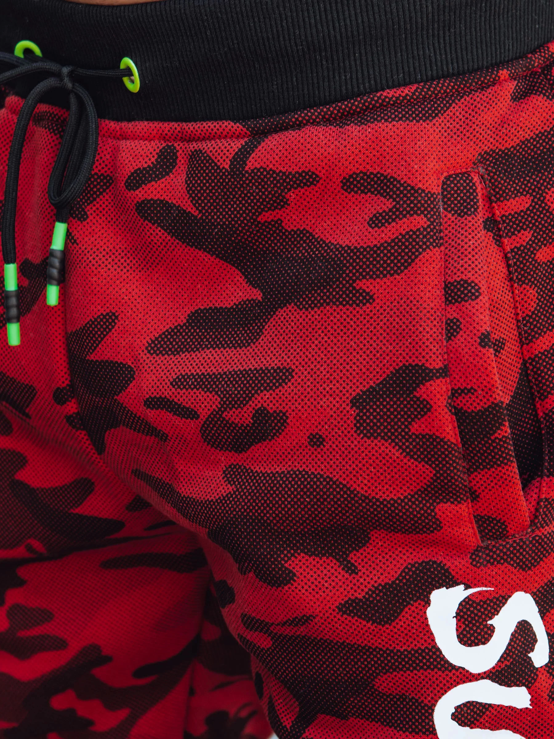 - Potisk na levé nohavici.