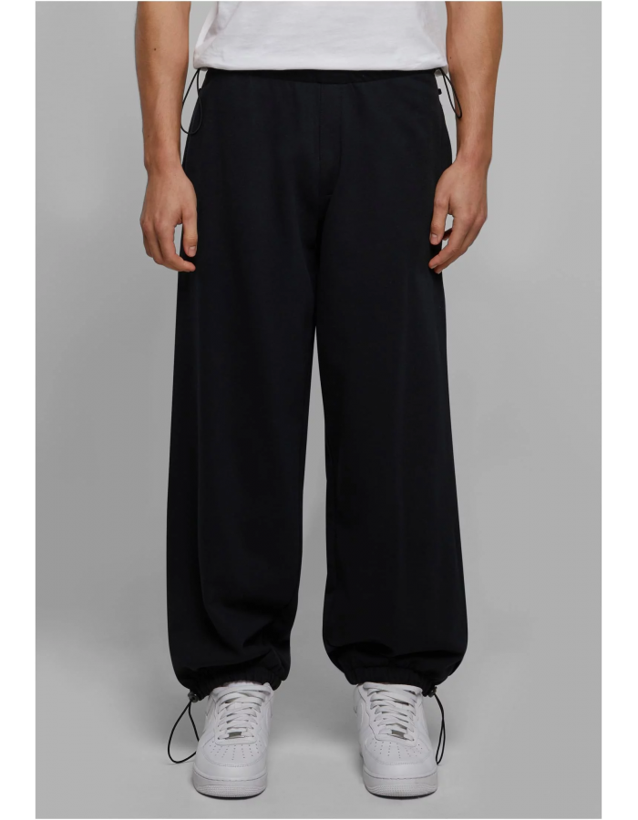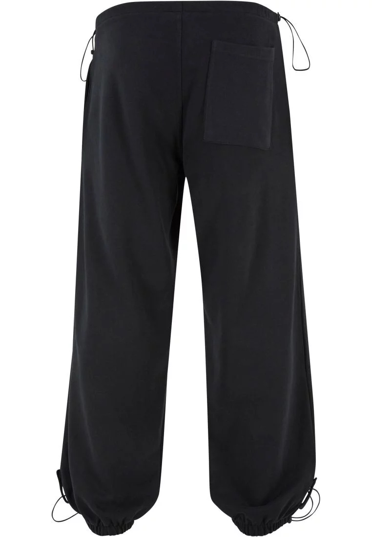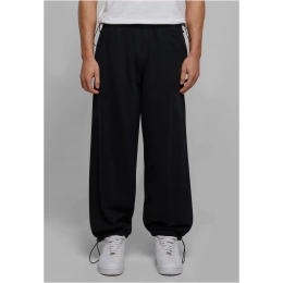 Pánské tepláky nabízejí trendy padákový střih s možností nastavení pomocí šňůrek a zarážky v pase a na manžetách. Postranní kapsy, záplatovaná kapsa na zadní straně a falešný zip jako další stylový akcent doplňují design. Tepláky jsou vyrobeny z těžkého bavlněného froté a mají pohodlný oversize střih.
