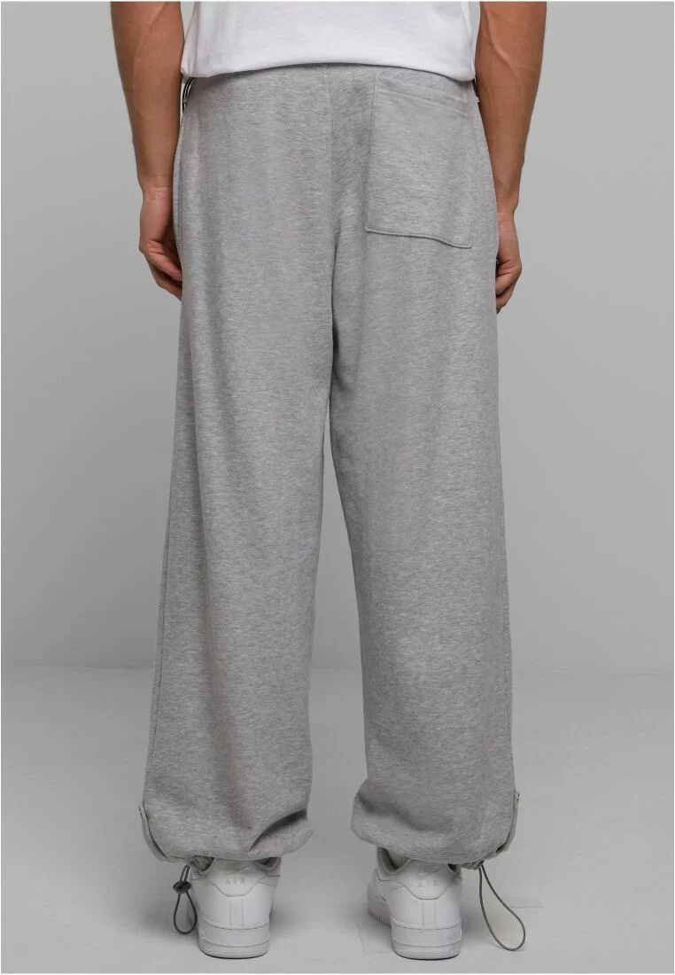 Pánské tepláky nabízejí trendy padákový střih s možností nastavení pomocí šňůrek a zarážky v pase a na manžetách. Postranní kapsy, záplatovaná kapsa na zadní straně a falešný zip jako další stylový akcent doplňují design. Tepláky jsou vyrobeny z těžkého bavlněného froté a mají pohodlný oversize střih.