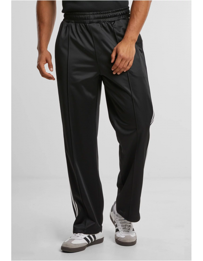 Sportovní kalhoty s elastickým pasem a bílými pruhy po stranách. Kalhoty mají volný střih, který poskytuje pohodlí při nošení. Jsou vyrobeny z lesklého materiálu, což jim dodává moderní sportovní vzhled. Na boční straně je kapsa pro praktické uložení drobností. Ideální pro sportovní aktivity nebo jako součást ležérního outfitu. Kombinace s bílými teniskami vytváří klasický sportovní styl.