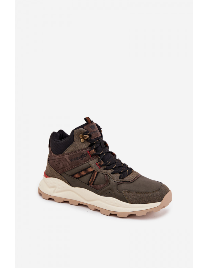 Pánské trekingové boty Wrangler West Men Mid v tmavě zelené barvě kombinují robustní konstrukci s pohodlným a odolným designem. Středně vysoký střih zajišťuje podporu kotníku, zatímco pevná a protiskluzová podešev poskytuje stabilitu na různých typech povrchů. Ideální volba pro každodenní nošení i outdoorové aktivity.