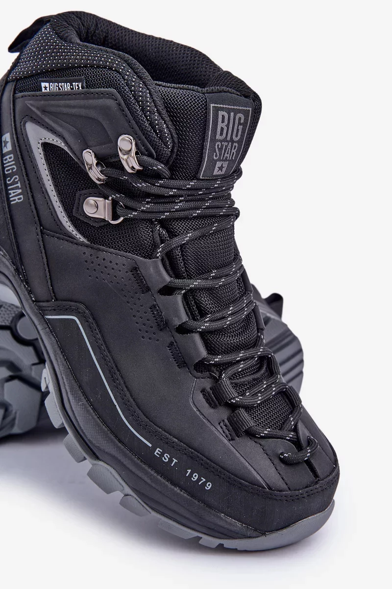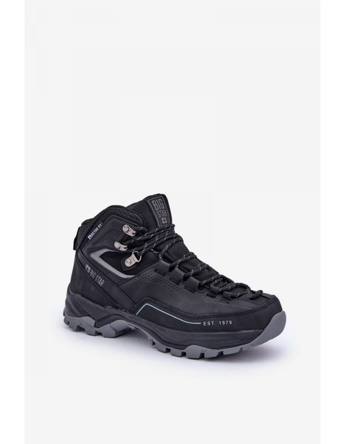 Pánské trekingové boty od Big Star jsou ideální volbou pro milovníky aktivit na čerstvém vzduchu. Lehké a pohodlné, zajišťují komfort během dlouhých túr. Mají voděodolnou membránu, která účinně ochrání nohy před vlhkostí, což je činí ideálními i v náročných povětrnostních podmínkách. Prodyšná vložka HI-POLY SYSTEM absorbuje vlhkost, tlumí nárazy a je odolná proti oděru a deformacím, což zaručuje dlouhodobý komfort. Tyto boty spojují odolnost a funkčnost, poskytují podporu a ochranu na každém kroku. Při výběru velikosti se prosím řiďte tabulkou velikostí.