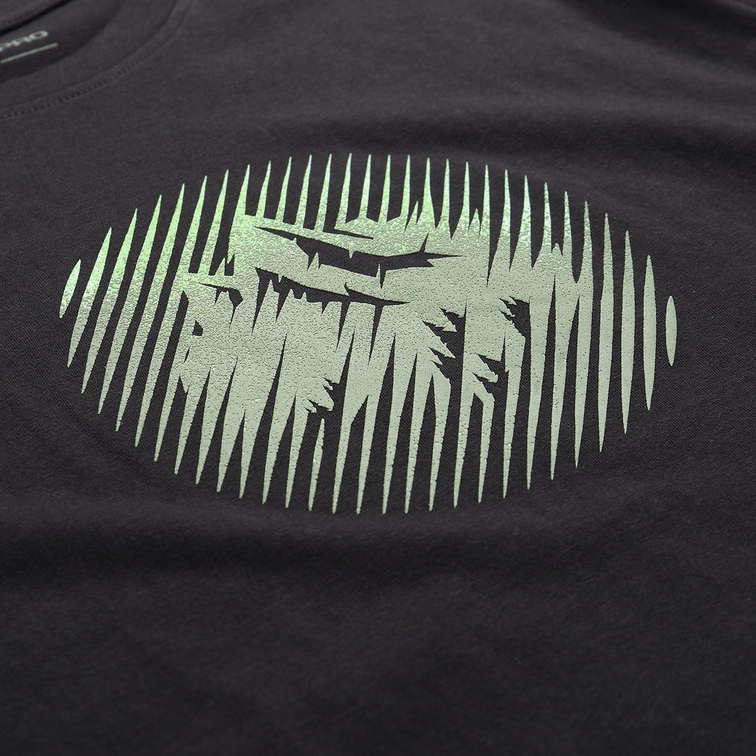 Díky polopřiléhavému střihu se pohodlně nosí a neomezuje v pohybu. Rychleschnoucí melírovaný materiál s 65 % podílem přírodní bavlny zaručuje příjemnou měkkost a prodyšnost. Stylový potisk na přední i zadní straně a decentní nášivka na rukávu dodávají triku moderní a svěží vzhled.