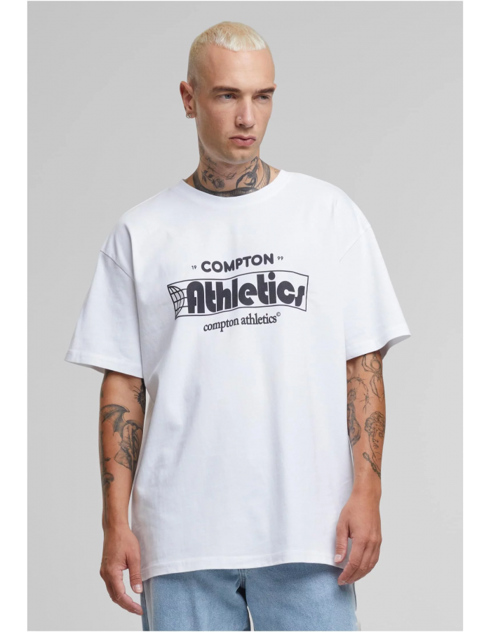 Tričko s krátkým rukávem a volným střihem. Na přední straně trička je potisk s nápisem „Compton Athletics“ a motivem globusu, což tričku dodává sportovní styl. Dole je navíc uveden nápis „compton athletics“ zaregistrovaný jako ochranná známka.