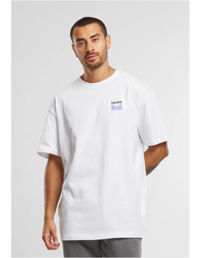 Toto tričko má na přední straně malé logo s nápisem "UpscaleSt" umístěné na levé straně hrudi. Na zadní straně se nachází větší grafika s motivem kovboje na koni doplněná o velký nápis "Live Bold". Pod hlavním nápisem se nachází text: "Live tough, push hard, exceed every line." Celkový vzhled trička působí moderně a odvážně, ideální pro ty, kteří se nebojí vyniknout.