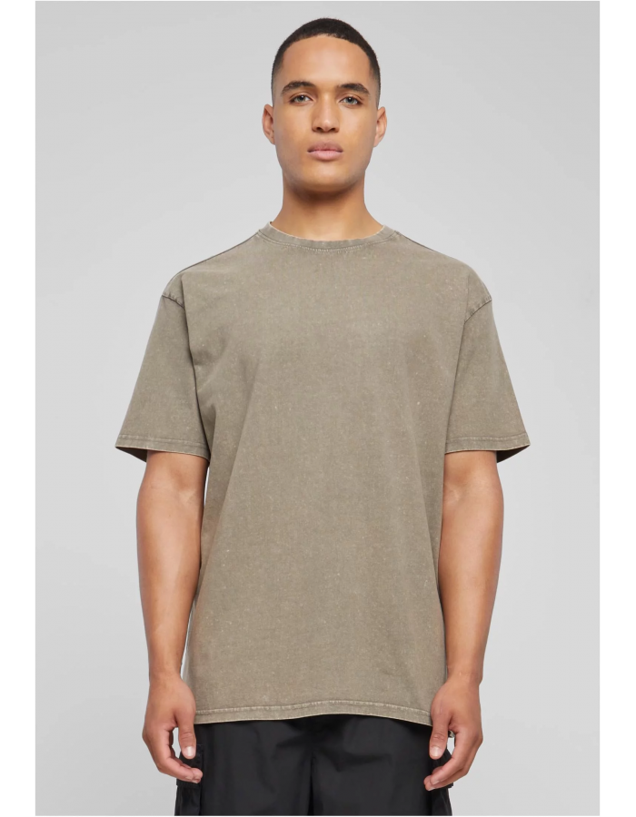 Těžké oversize tričko darkkhaki XS vyperené v kyselině