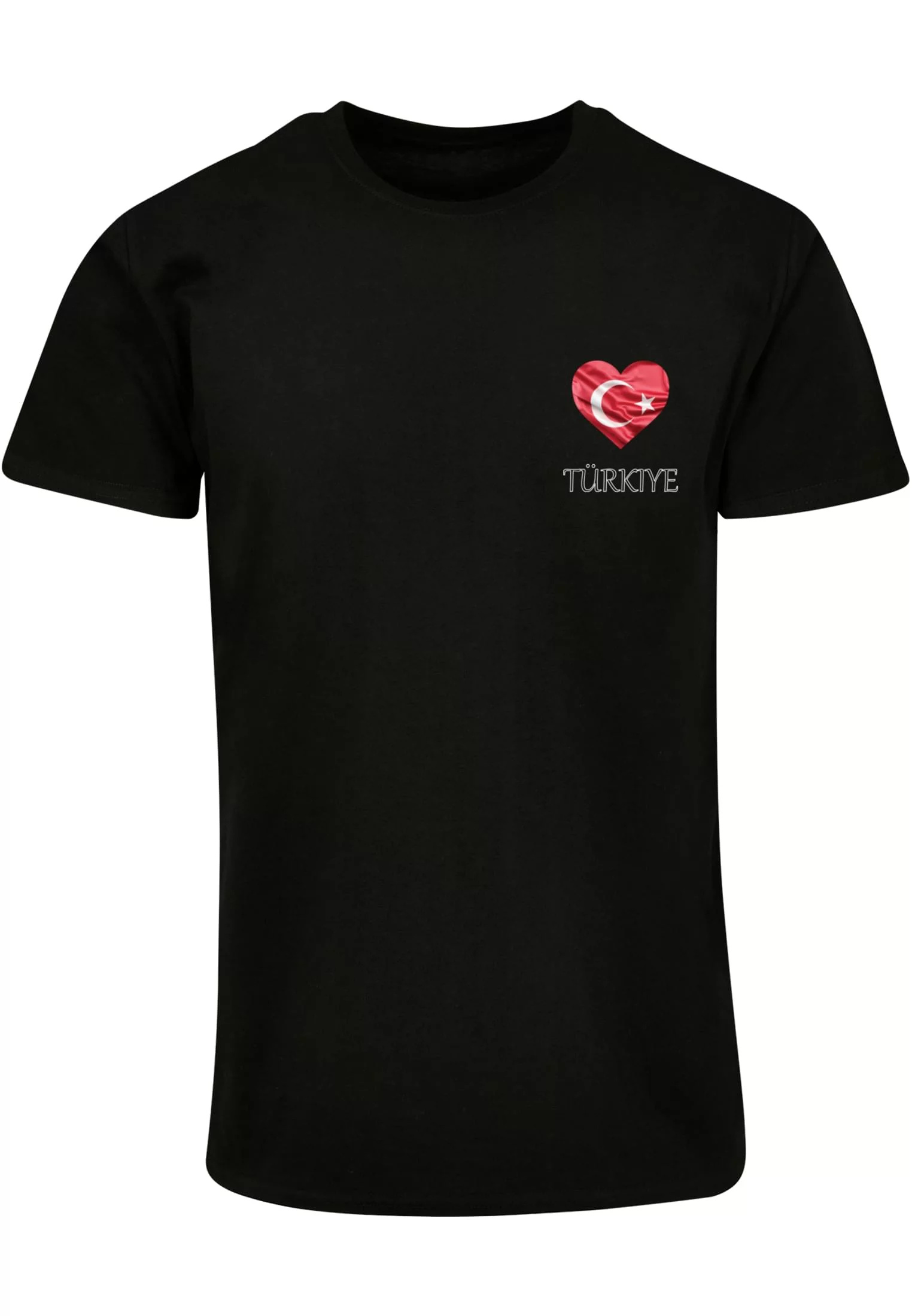 Tričko s minimalistickým, ale výrazným designem. Na levé straně hrudi je malé srdce, které nese motiv turecké vlajky, tedy půlměsíc a hvězdu, a pod ním je nápis „TÜRKİYE“.