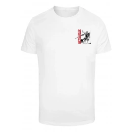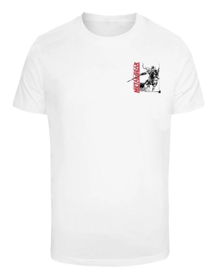 Tričko s motivem inspirovaným hrou Metal Gear. Na přední straně trička se v levé horní části nachází černobílý grafický motiv postavy z této hry, vedle ní je červený vertikální nápis „Metal Gear“. Na zadní straně trička je větší grafika stejné postavy v bojové póze, držící zbraň. Tento design je opět doplněn nápisem „Metal Gear“ ve spodní části. Celkový design je stylizován v komiksovém duchu, což odráží akční a dramatický tón hry. Tričko má klasický kulatý výstřih a krátký rukáv.