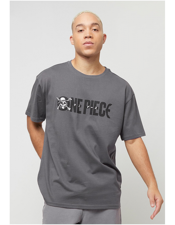 Tričko s motivem ze série One Piece. Uprostřed hrudi je velký nápis „ONE PIECE“, kde první „O“ je stylizováno jako lebka s kříženými kostmi, která má na sobě typický slaměný klobouk, známý z anime a mangy One Piece. Tento motiv symbolizuje pirátské téma série. Nápis je černý a nad ním jsou malé japonské znaky. Tričko má krátký rukáv a klasický kulatý výstřih.