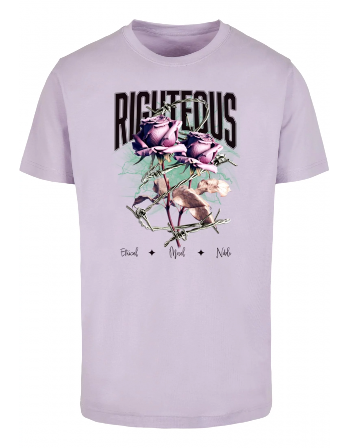 Vyjádřete svůj osobitý styl s pánským tričkem "Righteous Roses". Vyrobeno z bavlny pro maximální pohodlí a dlouhou životnost. Na přední straně je detailní potisk růží s nápisem "Righteous", symbolizující krásu a sílu. Klasický rovný střih zajišťuje volnost pohybu.