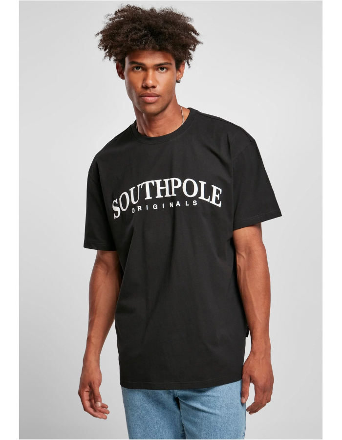 Střed stylu dominuje mírně zakřivené logo "Southpole Originals", které se jako velký bufferový potisk tyčí přes celou hruď. Košile je vyrobena z jemné jednolícní pleteniny a je vybavena štítkem Southpole.