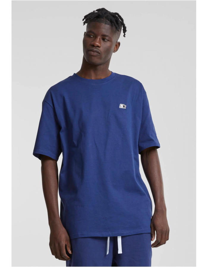Jednoduché a sportovní pánské tričko Starter ležérního oversize střihu a spadlých ramen. Je třikrát značkový: s malým vyšívaným logem Starter na hrudi, potiskem loga na levém rukávu a nášivkou na levém lemu. Pánské triko navíc nabízí kulatý výstřih.
