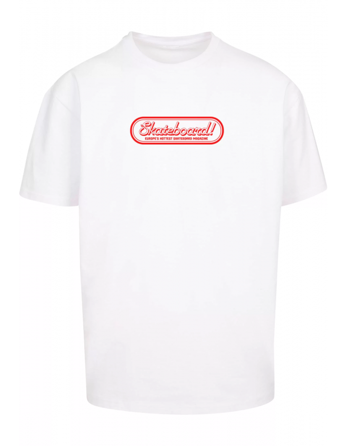 Tričko s krátkým rukávem a jednoduchým designem. Na přední straně je červený nápis „Skateboard!“ v retro stylu, doplněný menším textem „Europe’s Hottest Skateboard Magazine.“ Tento motiv je umístěn ve středu hrudi a celý potisk je zasazen do oválného rámečku. Tričko má klasický střih s kulatým výstřihem a díky své jednoduchosti a svěžímu designu působí moderně a stylově. Je ideální pro milovníky skateboardingu nebo pro ty, kteří hledají minimalistický kousek s nádechem nostalgie.