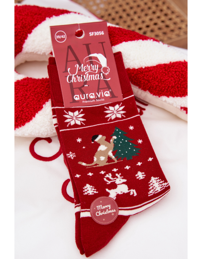 Veselé pánské vánoční ponožky v červené barvě s motivem kočky a vánočního stromečku přinášejí sváteční atmosféru do každého outfitu. Vyrobené z měkkého a pružného materiálu, zajišťují pohodlné nošení po celý den. Hravý motiv je ideální pro vánoční domácí pohodu, oslavy či jako originální dárek.