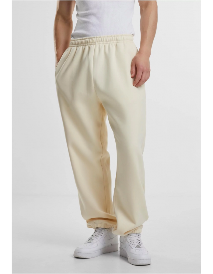 Teplákové kalhoty volného střihu. Mají elastický pas pro pohodlné nošení a elastické manžety na nohavicích. Kalhoty jsou vyrobeny z měkkého materiálu, což je ideální pro pohodlný a uvolněný styl. Tento typ tepláků je vhodný pro volnočasové aktivity nebo neformální nošení. Model je zkombinoval s bílými sportovními teniskami, což podtrhuje ležérní a stylový vzhled.