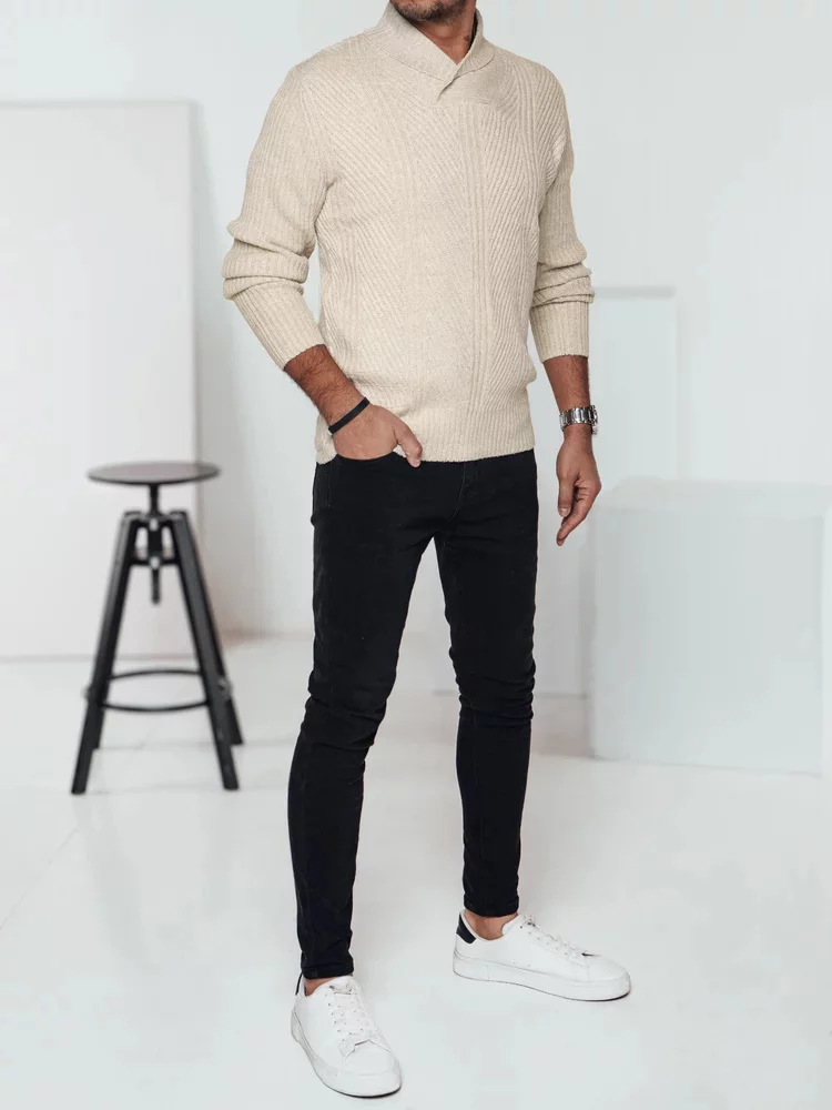 Svetr s šálovým límcem ideální na chladnější dny, vynikající elegantním pletením. Vyrobený z vysoce kvalitního materiálu, který zajišťuje pohodlí a komfort nošení po celý den. Díky univerzálnímu střihu se skvěle hodí jak k ležérním, tak i k elegantnějším stylizacím. Ideální volba pro muže, kteří si cení klasického stylu s moderním nádechem.