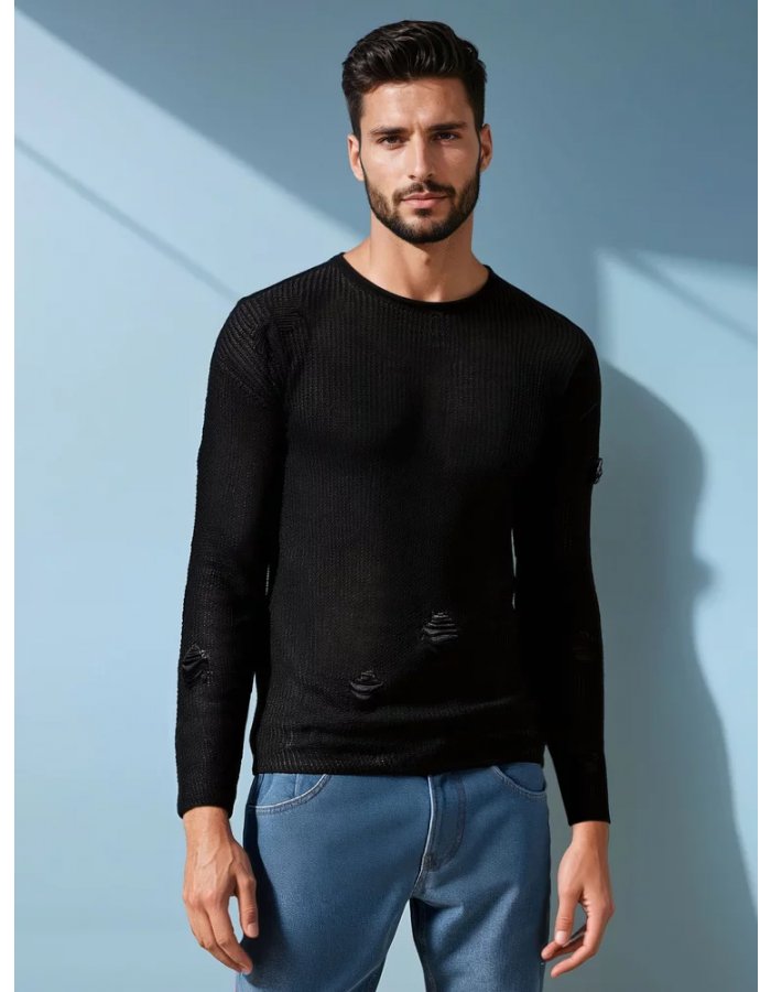 Originální pánský svetr s jemnými oděrkami, které mu dodávají výrazný charakter. Vyrobený z měkkého úpletu, skvěle se hodí pro ležérní stylizace. To je skvělá volba na každý den, když chceš spojit pohodlí s módním vzhledem.