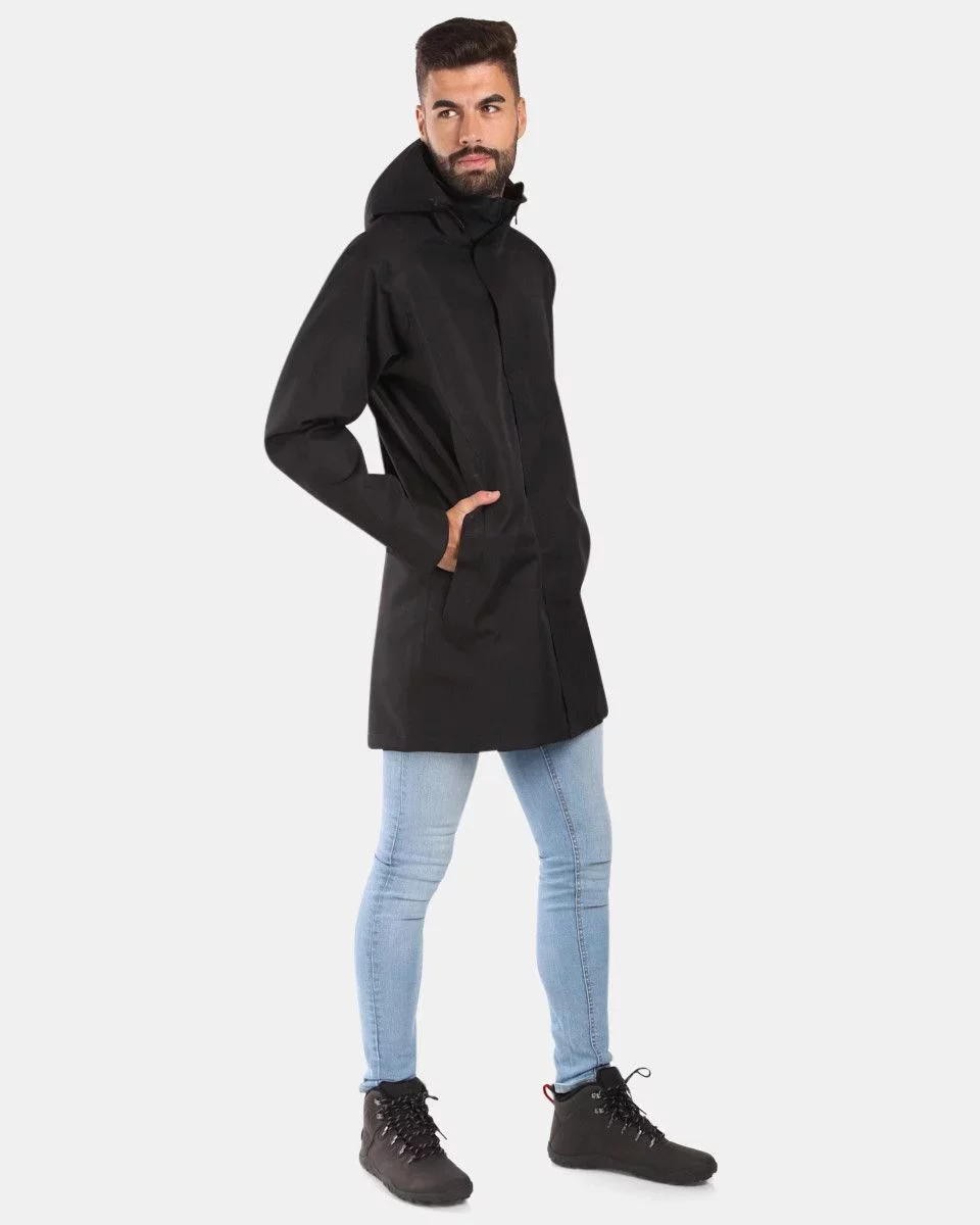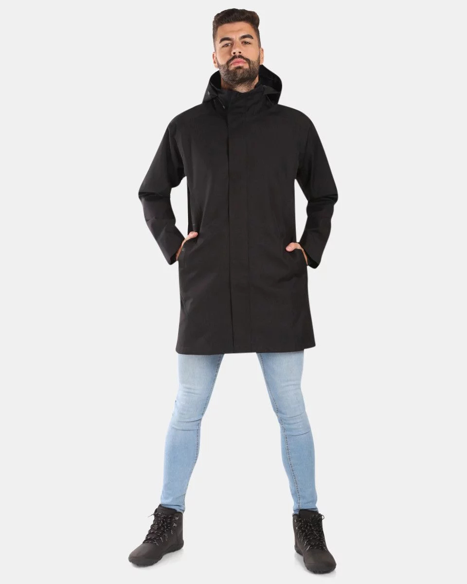 Pánský, elegantní, nepromokavý kabát Kilpi IVAR-M vás spolehlivě ochrání v nepříznivém počasí. Použitý materiál SIBERIUM, s parametry vodního sloupce 10 000 mm/m2/24h, s podlepenými švy vás ochrání před deštěm, větrem i sněžením. Velká kapuce se zpevněným kšiltem, vysokým límcem a možností stáhnutí vám poskytne žádanou ochranu. Praktické zipové kapsy, vnitřní kapsička, hlavní zip krytý légou. Navíc elastické manžety v rukávech, díky kterým neprofouknete. Decentní, moderní design se hodí na denní nošení do města nebo do práce pro každého moderního muže, který chce vypadat stylově za každého počasí. Pro dosažení maximálního komfortu, doporučujeme kabát Kilpi IVAR-M kombinovat s kvalitní péřovou bundou, vestou nebo bundou se syntetickou výplní.Model na fotografii: Velikost M, výška 189 cm, obvod hrudníku 100 cm, obvod pasu 84 cm, obvod boků 102 cm.