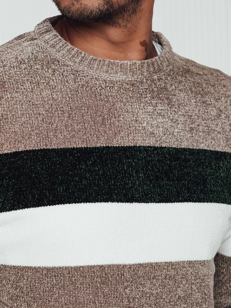 Pánský pruhovaný svetr hnědý Dstreet WX2242 M
