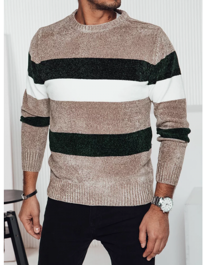 Teplý pánský svetr s módními pruhy, ideální na chladnější dny.